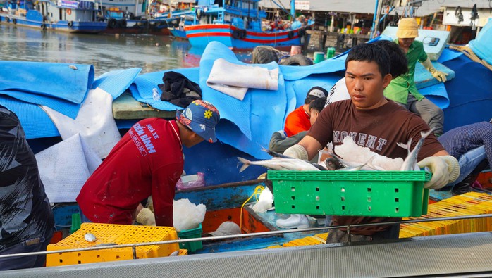Ngư dân chuyển cá từ tàu lên cảng cá