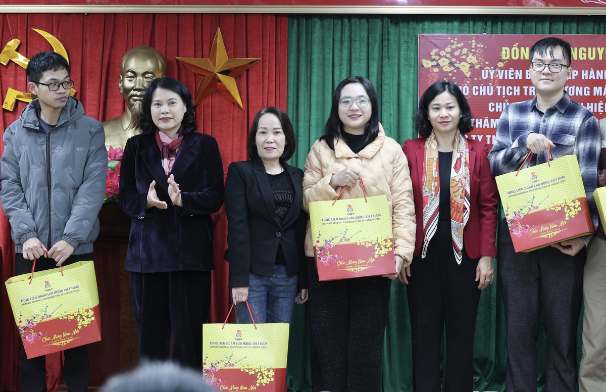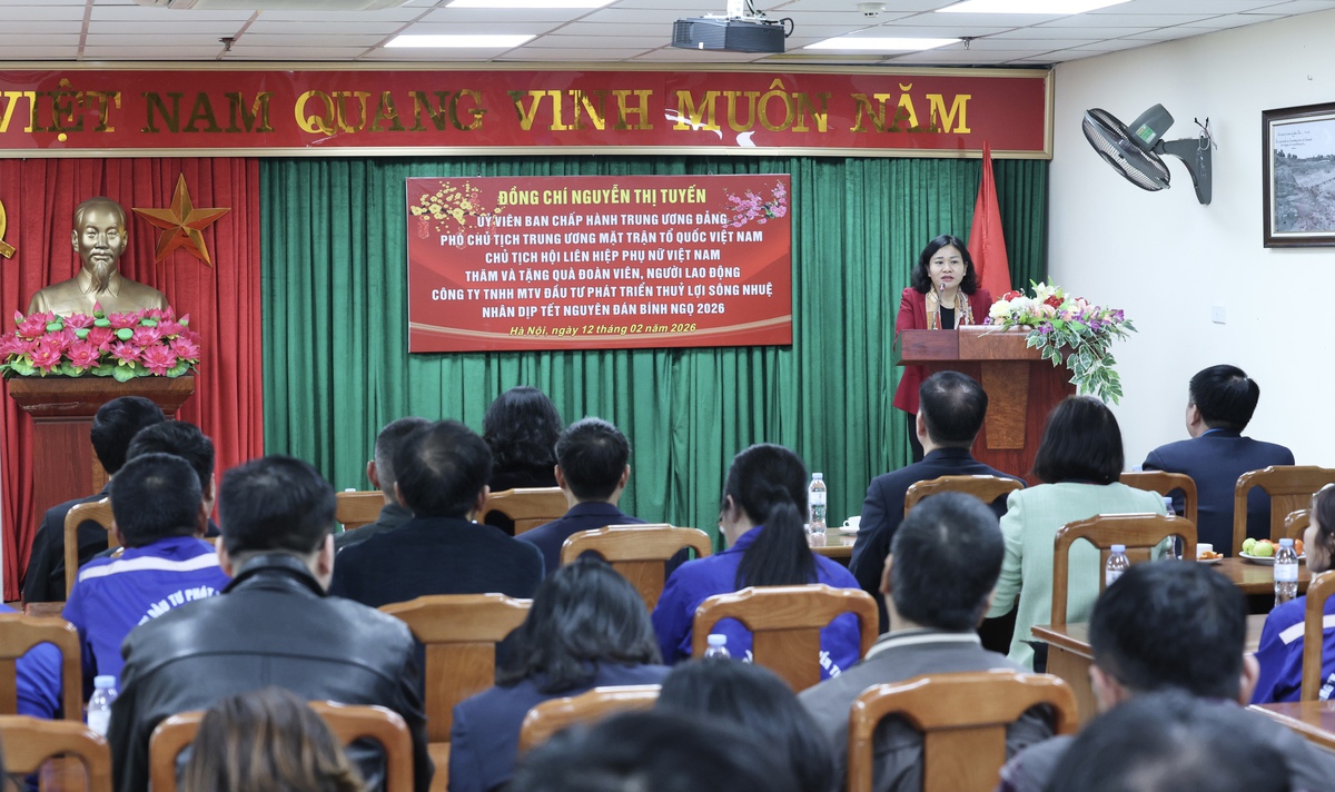 Bà Nguyễn Thị Tuyến (giữa), Ủy viên TƯ Đảng, Phó Chủ tịch Ủy ban Trung ương MTTQ Việt Nam, Chủ tịch Hội LHPN Việt Nam, chúc mừng cán bộ, công nhân, người lao động tại Công ty TNHH MTV Đầu tư phát triển Thủy lợi Sông Nhuệ nhân dịp Tết Bính Ngọ 2026