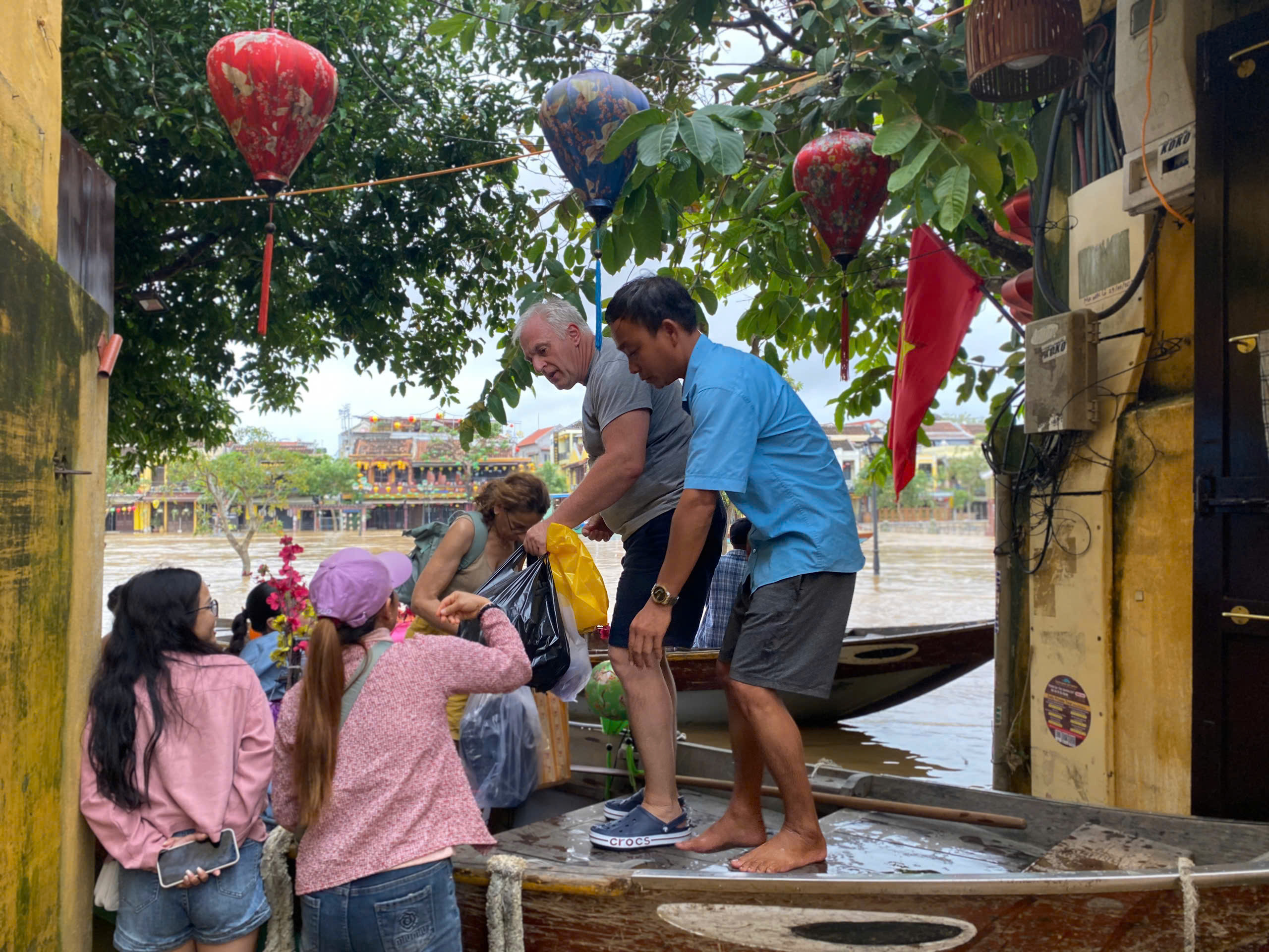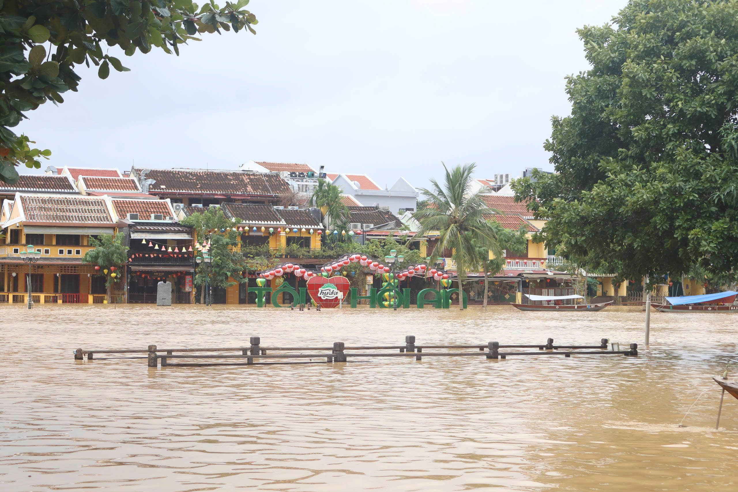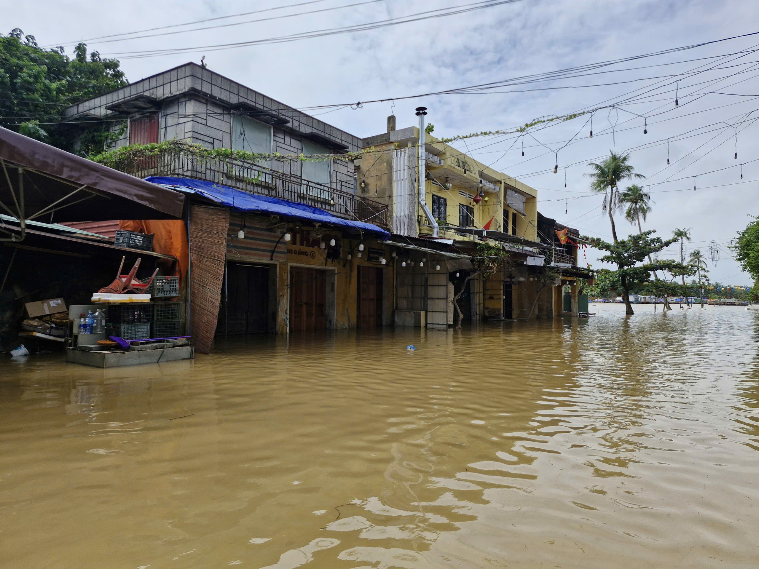 Nước lên nhanh, nhiều khu vực ở phố cổ Hội An bắt đầu ngập. Ảnh: XUÂN QUỲNH