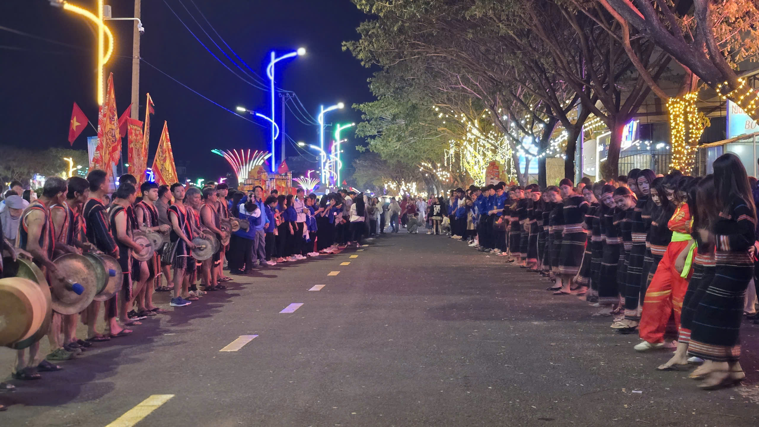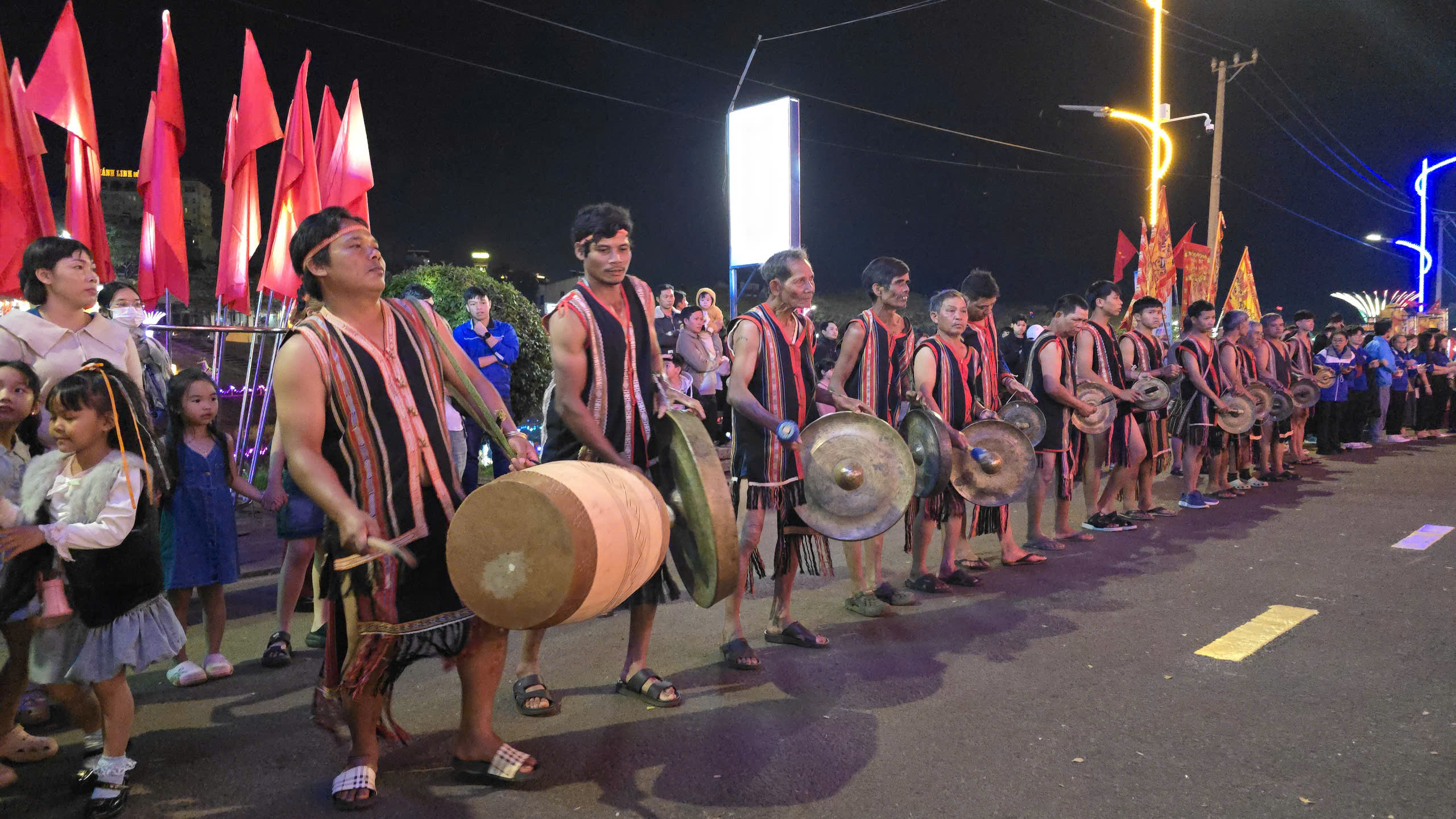 Cồng chiêng trên phố đi bộ khu vực Phố đêm chợ nhỏ.