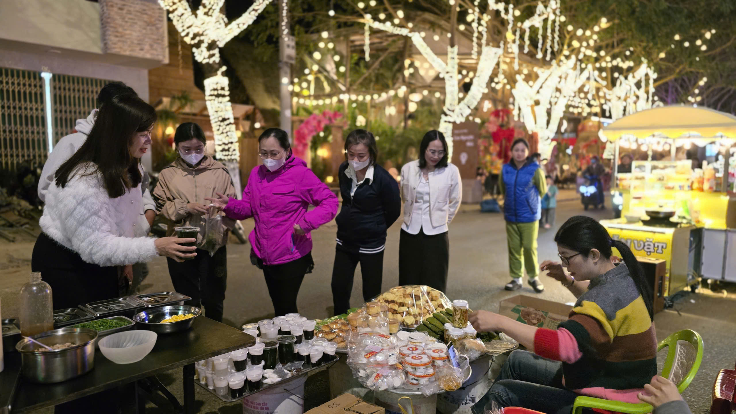 Du khách tham quan trải nghiệm ẩm thực trên phố đêm