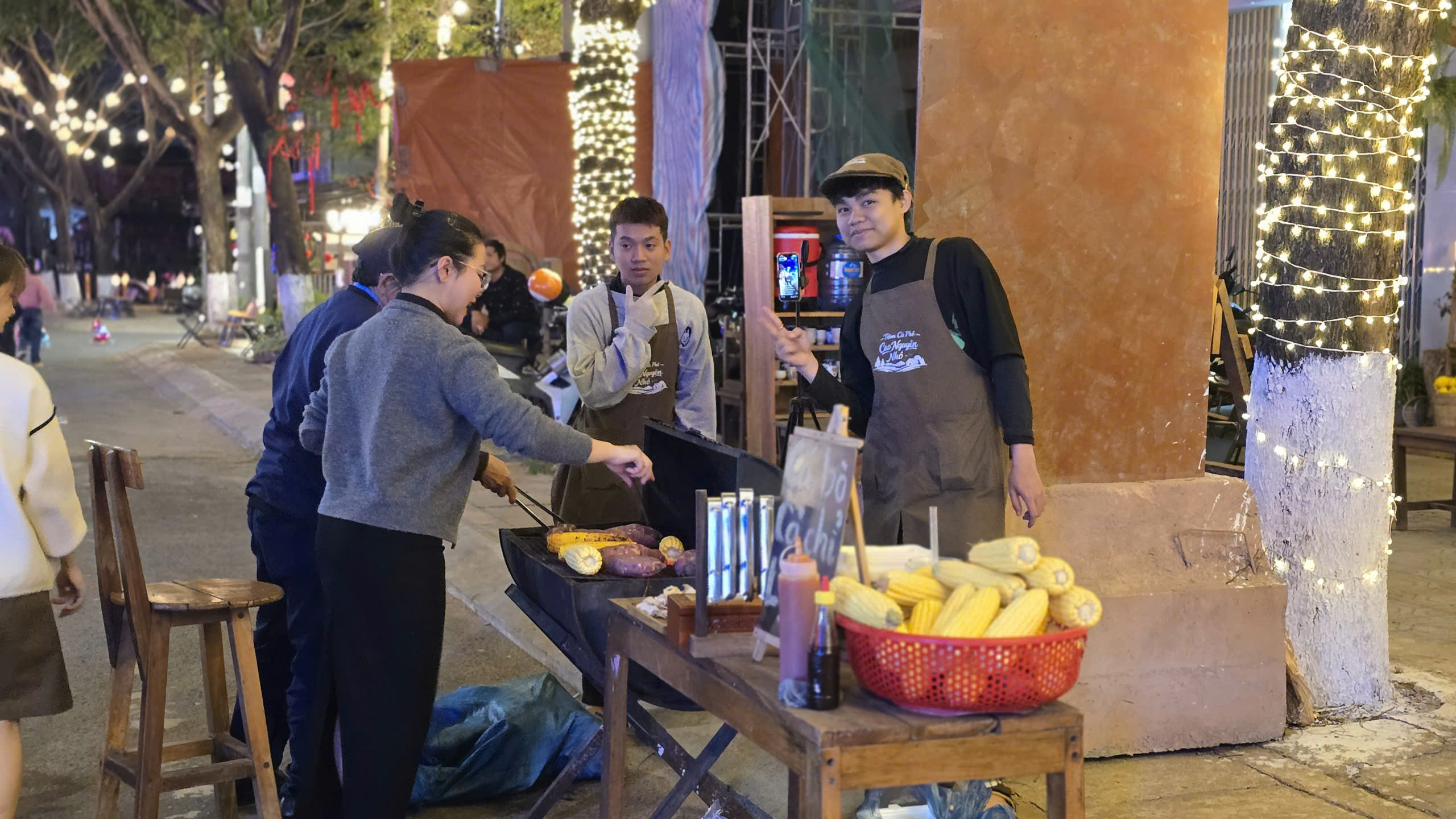 Đèn đường trang trí tạo nên những góc nhỏ chill trong lòng phố đêm.