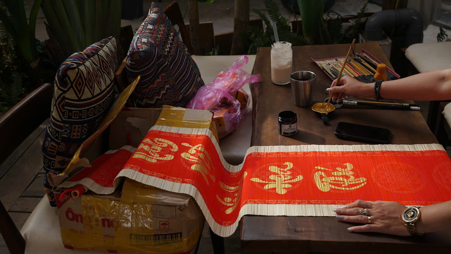 Viết thư pháp trên phố đi bộ.