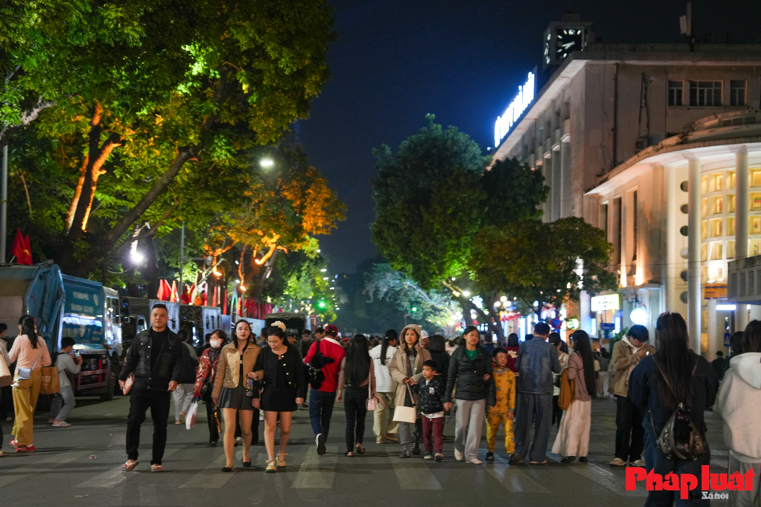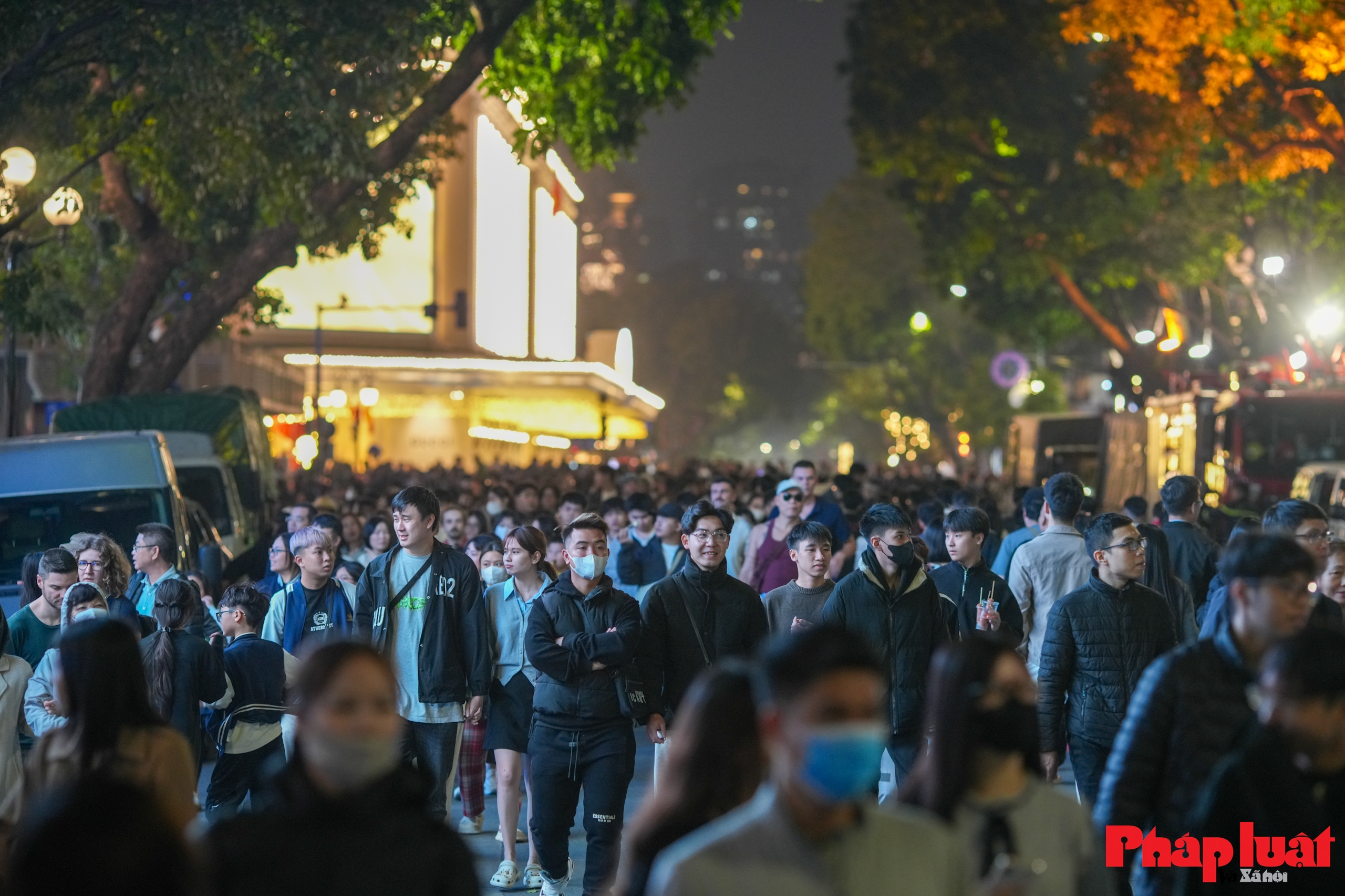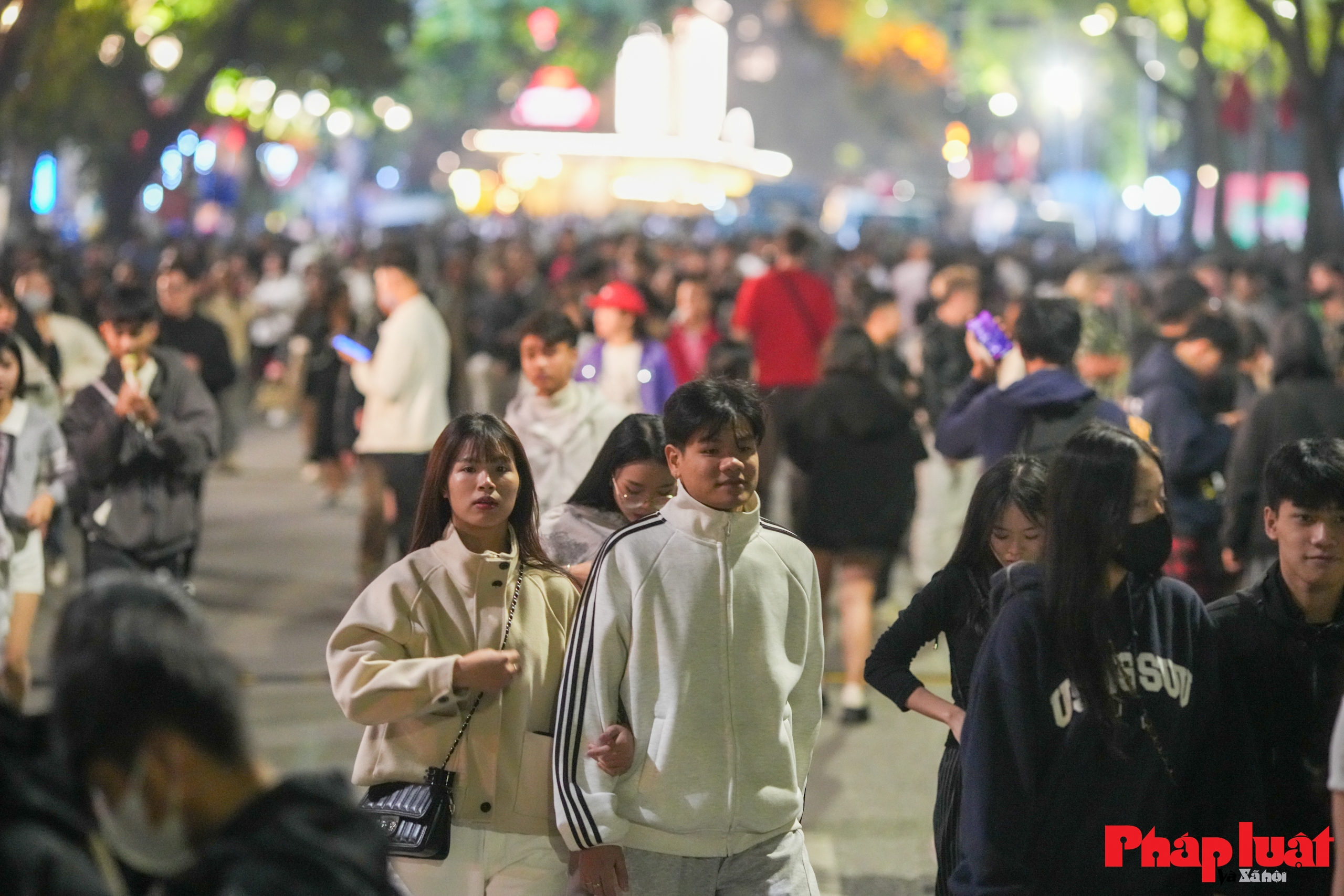 Từ đầu giờ tối, các lối dẫn vào không gian phố đi bộ quanh hồ Hoàn Kiếm đã bắt đầu đông người. Nhiều gia đình, nhóm bạn chủ động đến sớm để chọn vị trí thuận lợi, tránh cảnh chen chúc khi càng về khuya lượng người tăng nhanh.