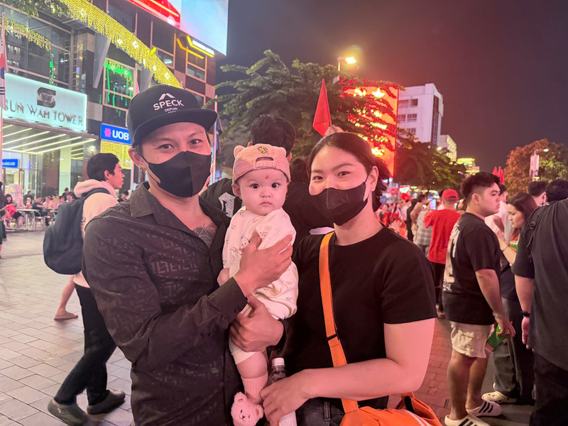 Chị Lê Thị Lan Phương (25 tuổi, ngụ phường Bình Trưng), đi cùng chồng và con trai cho biết: "Gia đình tôi xem đây như một buổi đi chơi đầu năm. Cháu nhỏ rất háo hức vì lần đầu được ra phố đi bộ xem bóng đá trên màn hình lớn. Không khí vừa đông vui, vừa an toàn, lại rất ý nghĩa vì cả nhà cùng cổ vũ cho đội tuyển".