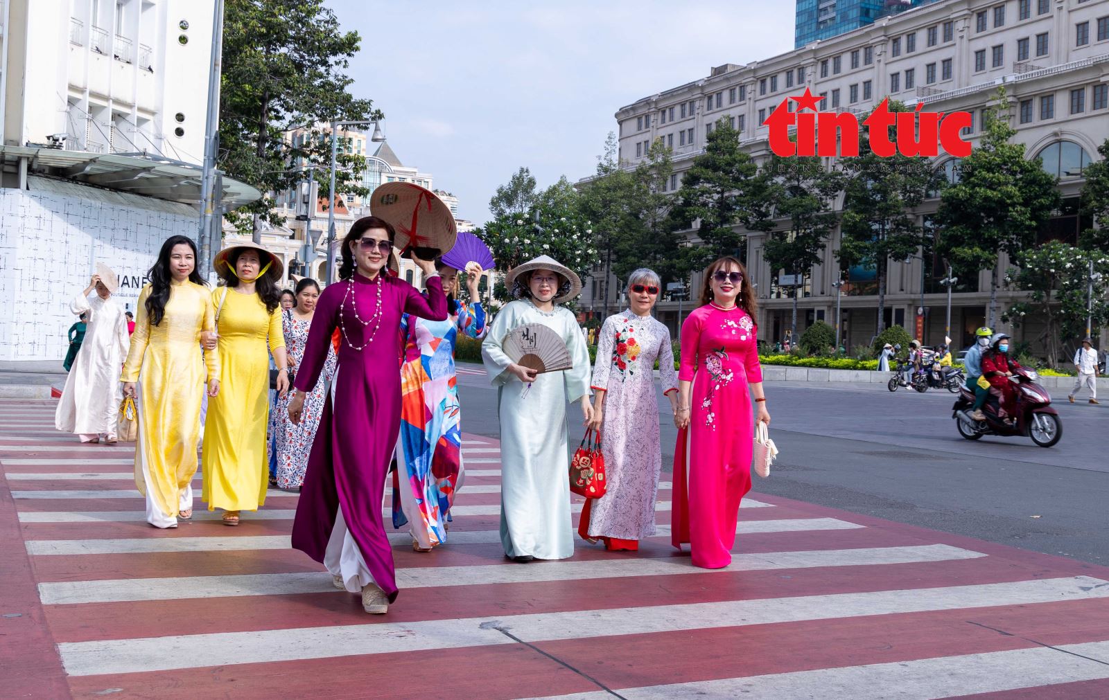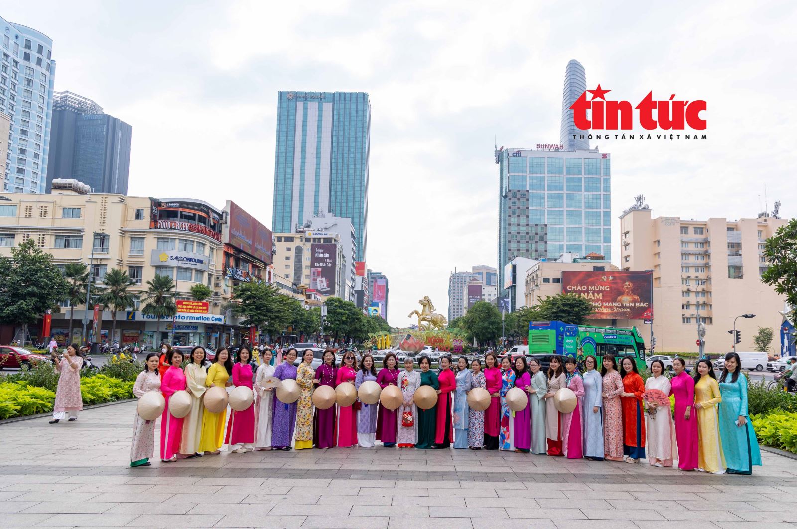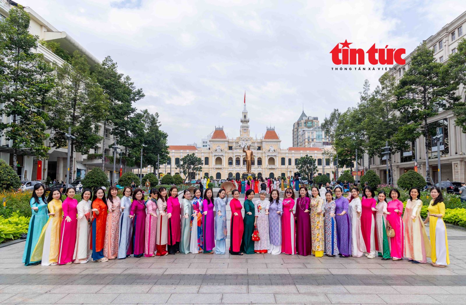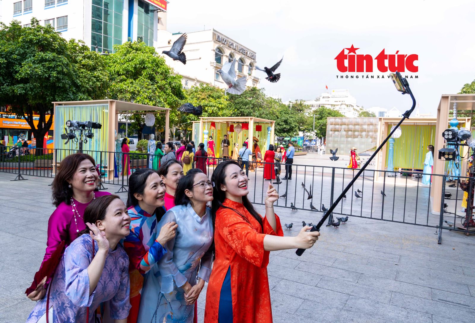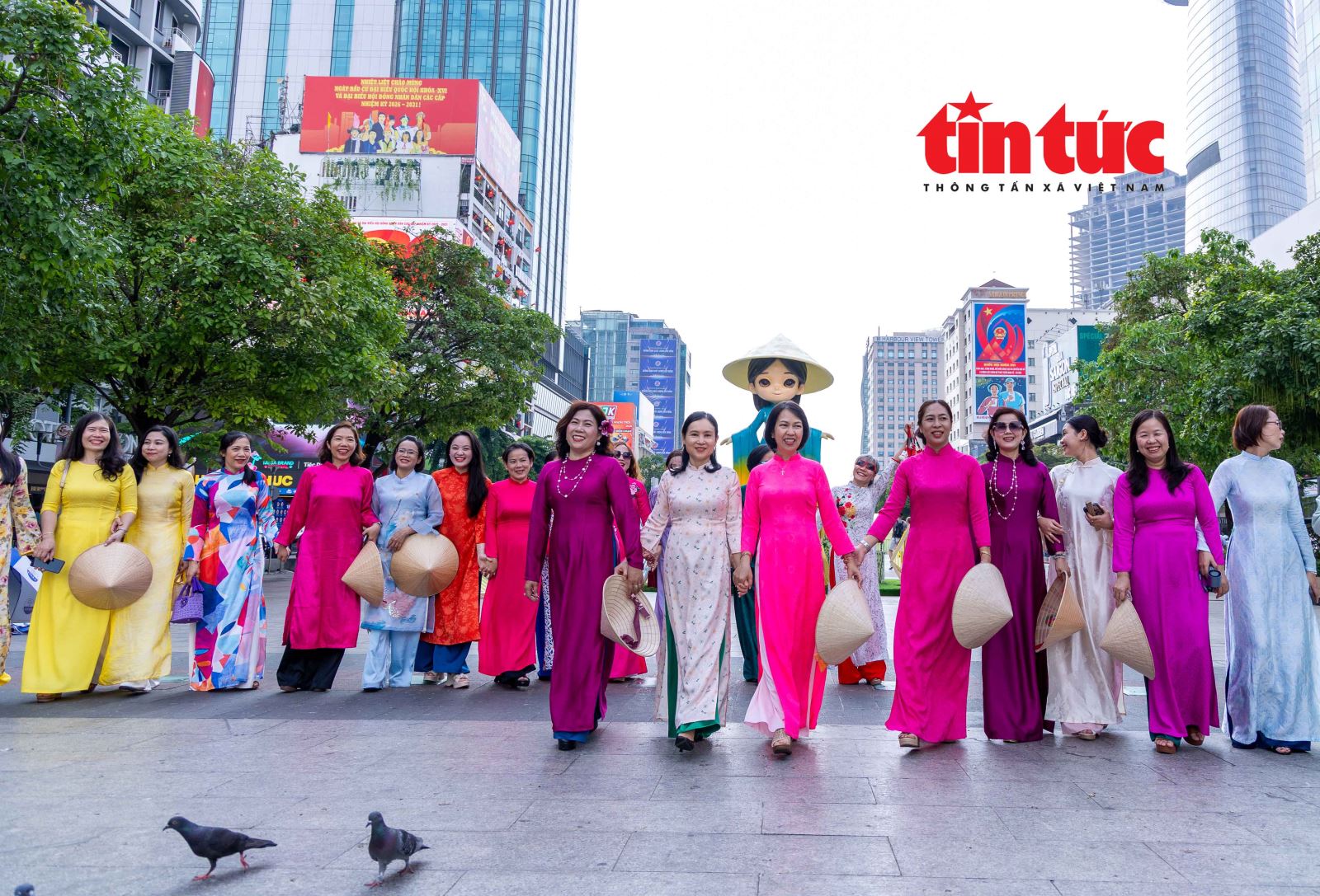 Theo ghi nhận của phóng viên Báo Tin tức và Dân tộc, ngay từ sáng sớm, khu vực phố đi bộ Nguyễn Huệ đã trở nên rộn ràng, nhiều sắc màu với nhiều nhóm phụ nữ, gia đình và các bạn trẻ diện áo dài với nhiều màu sắc, kiểu dáng khác nhau cùng tụ họp, ghi lại khoảng khắc ý nghĩa.