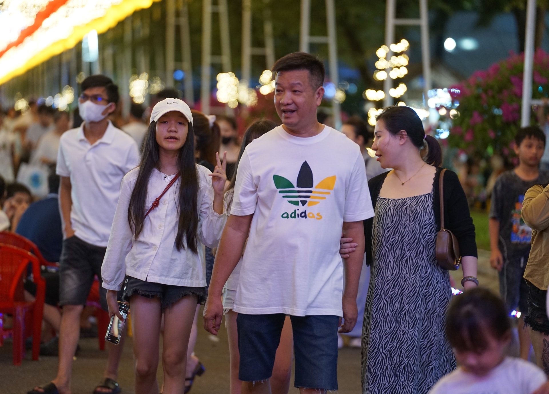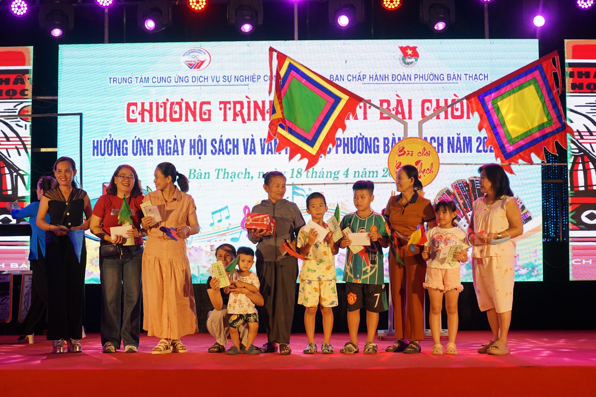 Khách tham quan phố đi bộ hòa mình vào không gian trình diễn bài chòi do Câu lạc bộ Bài chòi phường Bàn Thạch tổ chức. Ảnh: XUÂN SƠN