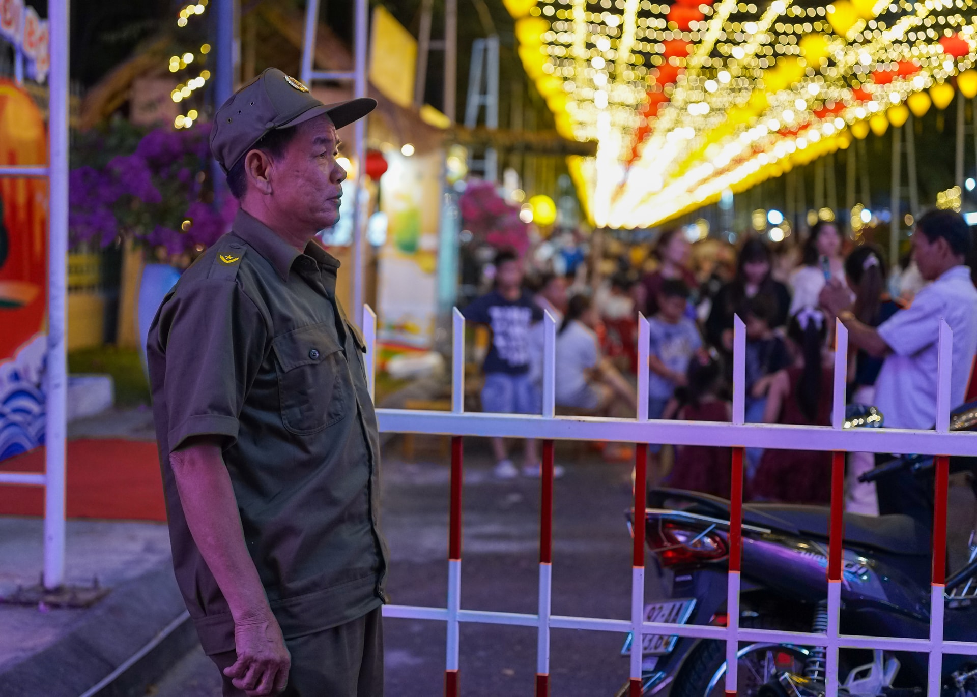 Lực lượng chức năng phường Bàn Thạch túc trực hướng dẫn người dân để xe đúng vị trí, bảo đảm an ninh trật tự cho khu vực phố đi bộ. Ảnh: XUÂN SƠN