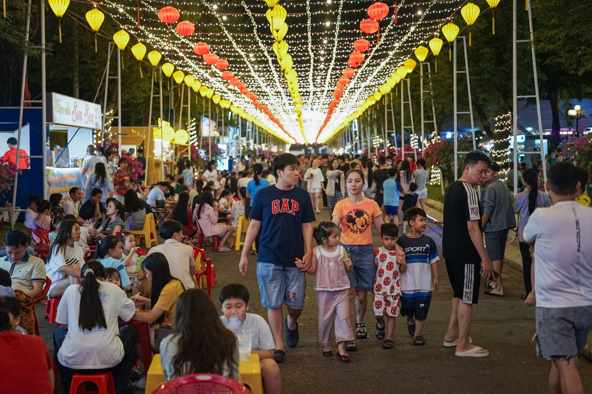 Không gian phố đi bộ có những tiểu cảnh thu hút khách check-in, chụp ảnh. Ảnh: XUÂN SƠN