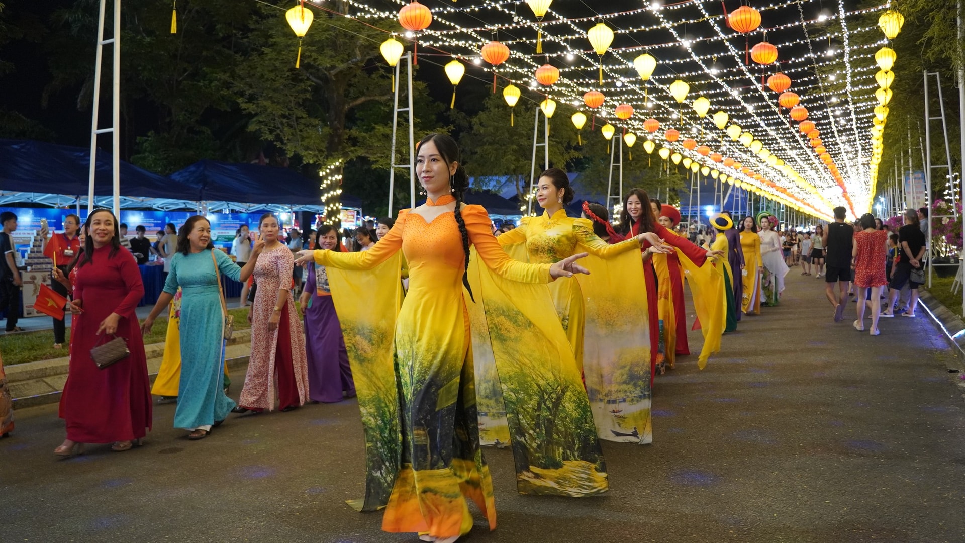 Trình diễn áo dài tại tuyến phố đi bộ. Ảnh: Phường Bàn Thạch