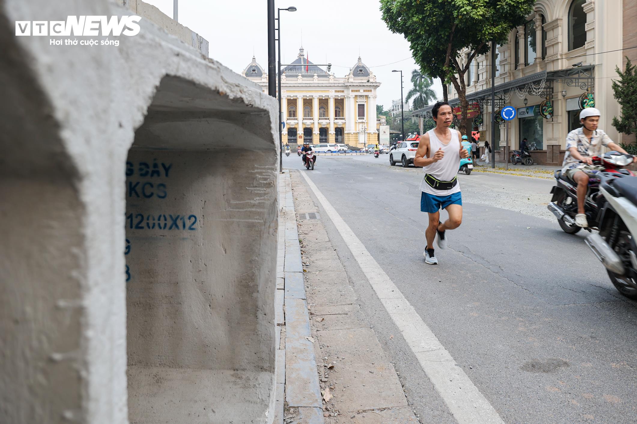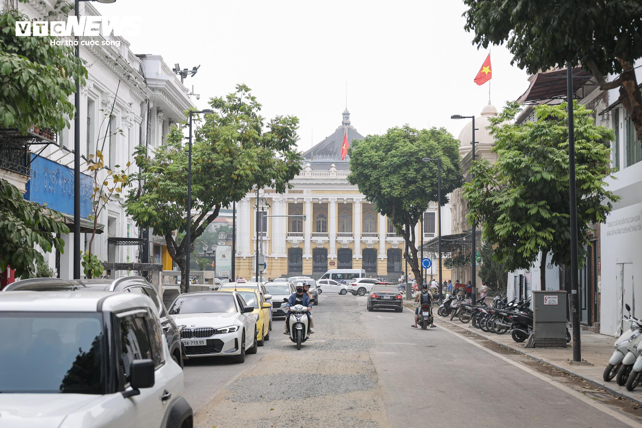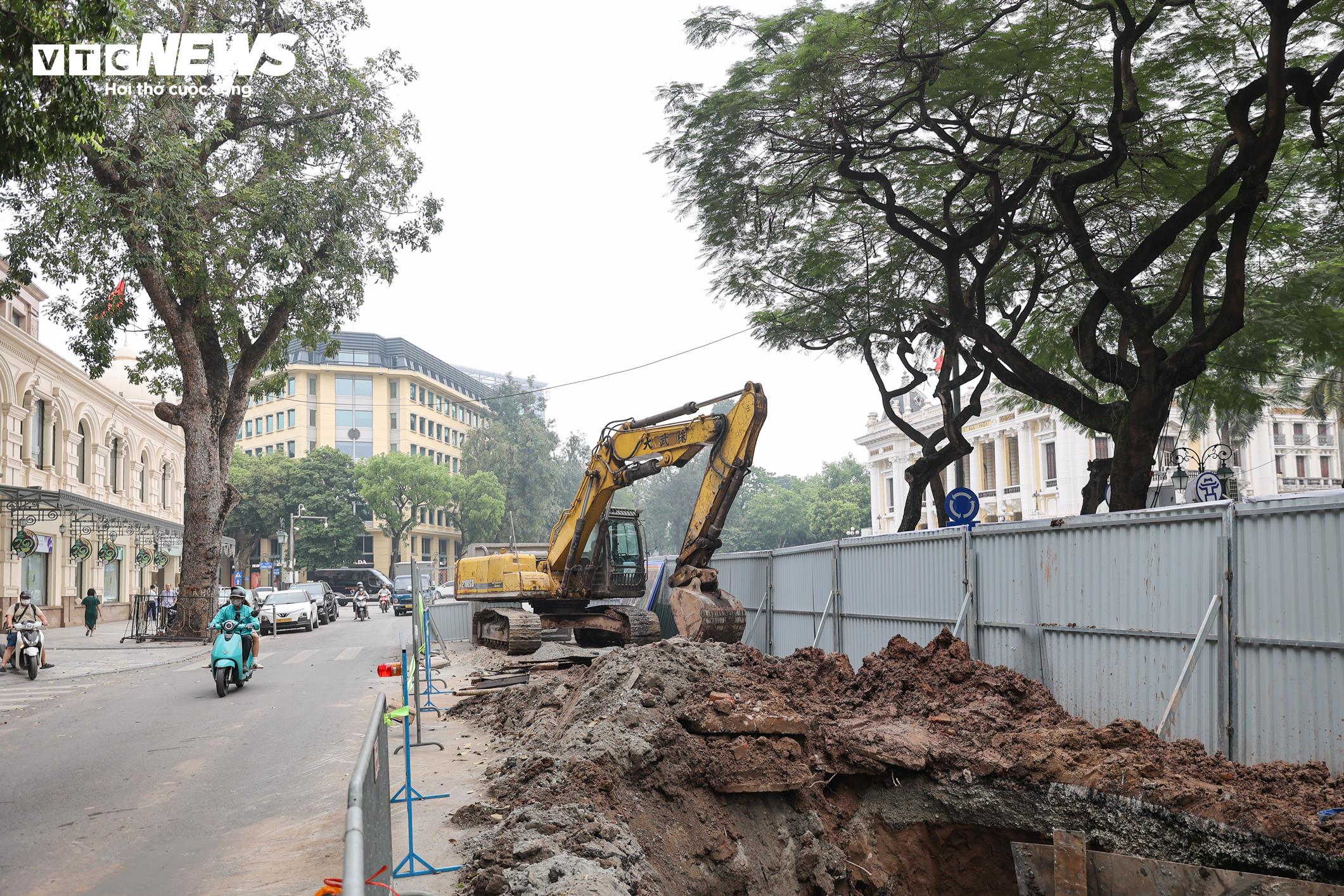 Đoạn đường dài khoảng 200 m, kéo từ trước Nhà hát Lớn Hà Nội đến Hotel de l’Opera Hanoi - MGallery chìm trong lớp bụi đất mù mịt.
