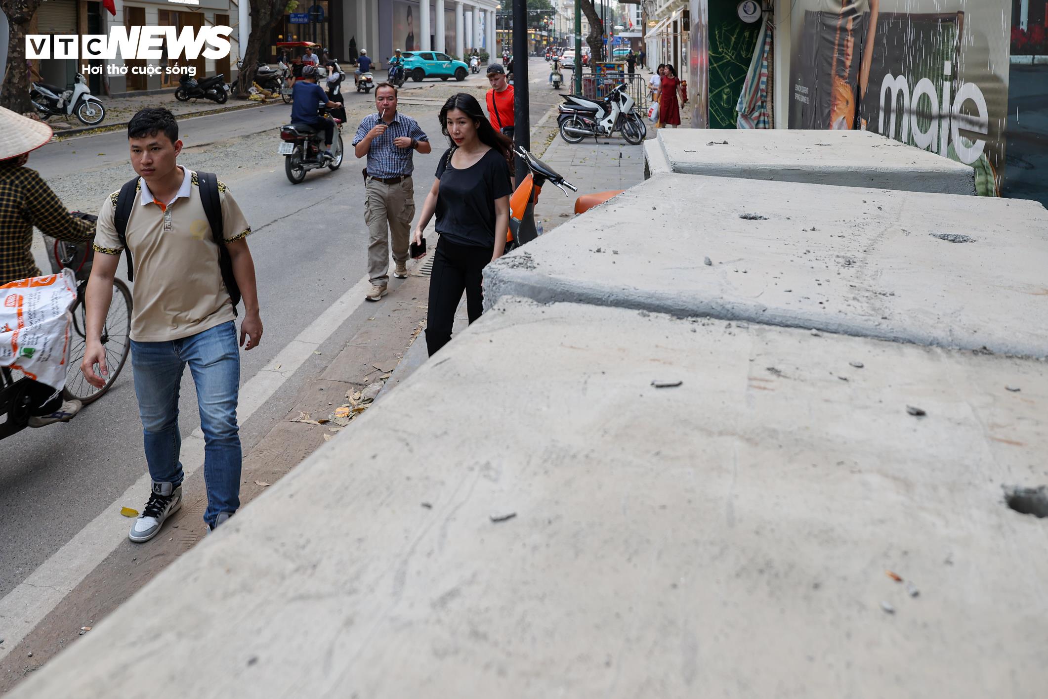 Từ giữa tháng 3, nhiều người dân và du khách đi qua khu vực phố Tràng Tiền (Hà Nội) bất ngờ trước cảnh tượng lòng đường bị đào xới, ống bê tông chất đống trên vỉa hè. Tuyến phố du lịch trở nên ngổn ngang như một đại công trường, bụi bay mù mịt suốt ngày đêm.