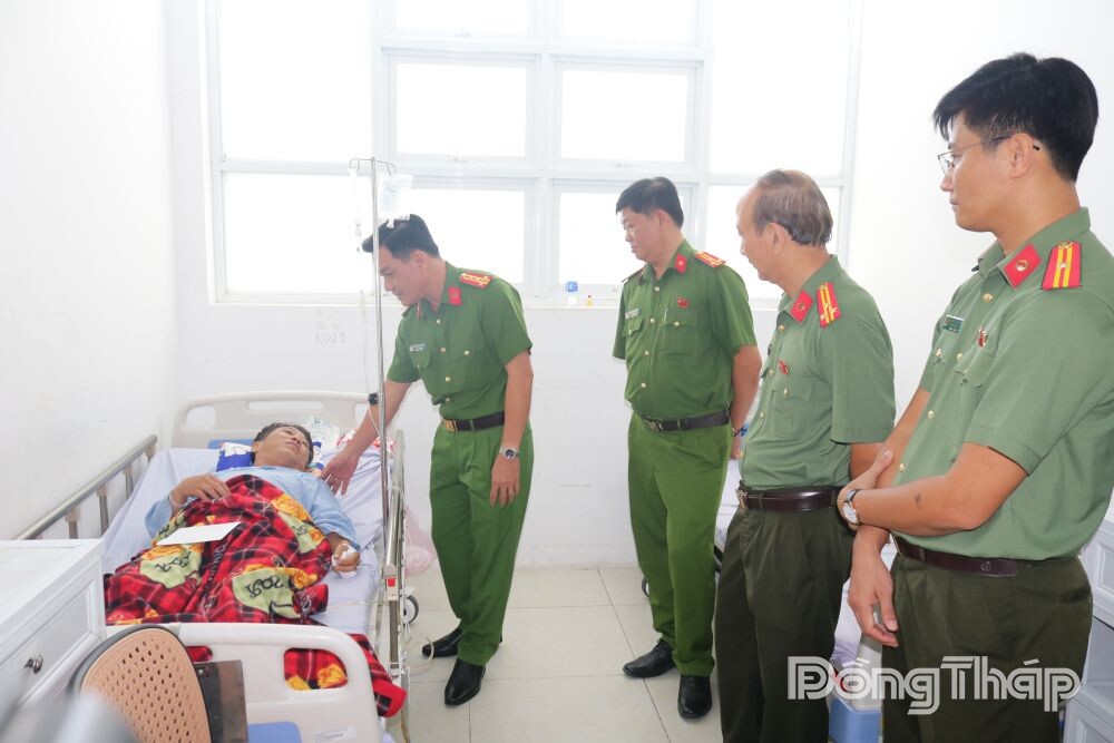 Theo đó, ngày 24-1, Đại tá Nguyễn Văn Thay, Phó Giám đốc Công an tỉnh đến thăm hỏi, động viên và trao số tiền 10 triệu đồng cho Thiếu tá Nguyễn Khắc Huy, Tổ phó Tổ Cảnh sát trật tự thuộc Công an xã Tam Nông bị thương trong khi làm nhiệm vụ, đang điều trị tại Bệnh viện Đa khoa Đồng Tháp.