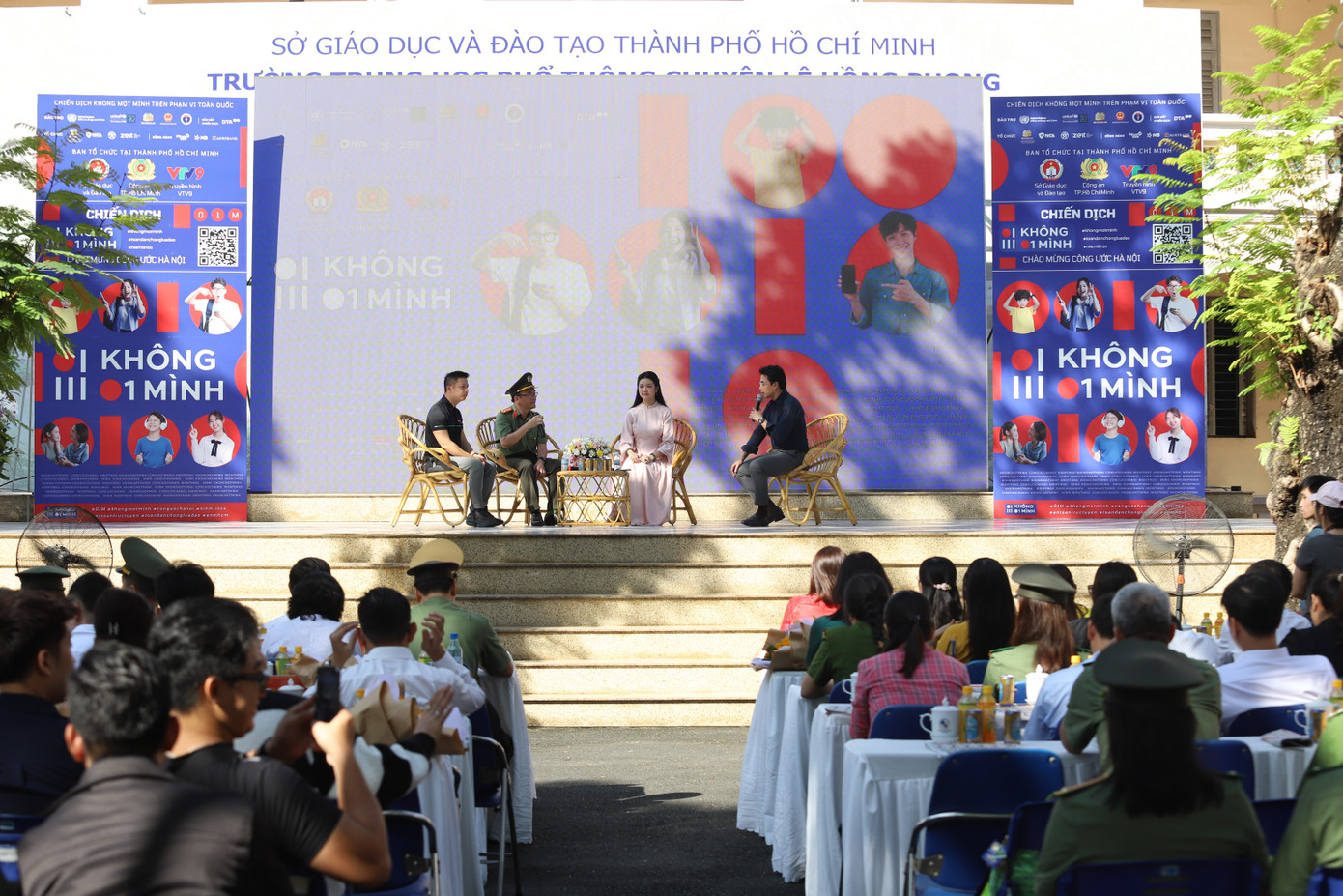 Sáng 20/10, tại Trường THPT Chuyên Lê Hồng Phong (TPHCM), Công an TP.HCM phối hợp với Sở Giáo dục và Đào tạo thành phố cùng nhiều tổ chức, hiệp hội, cá nhân và các nhà sáng tạo nội dung số tổ chức phát động chiến dịch “Không một mình – Cùng nhau an toàn trực tuyến”.