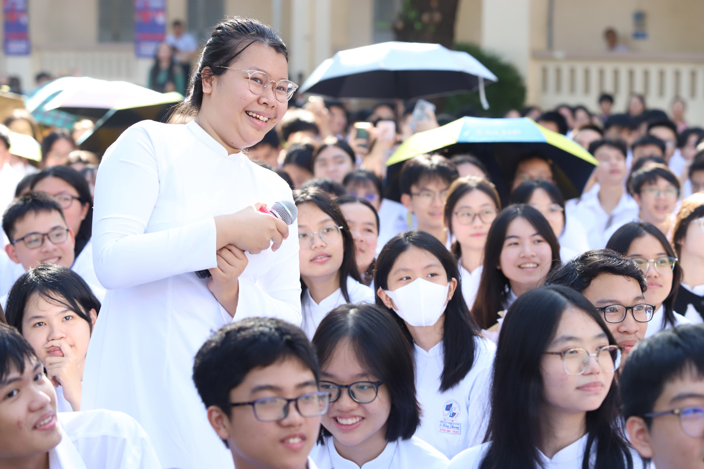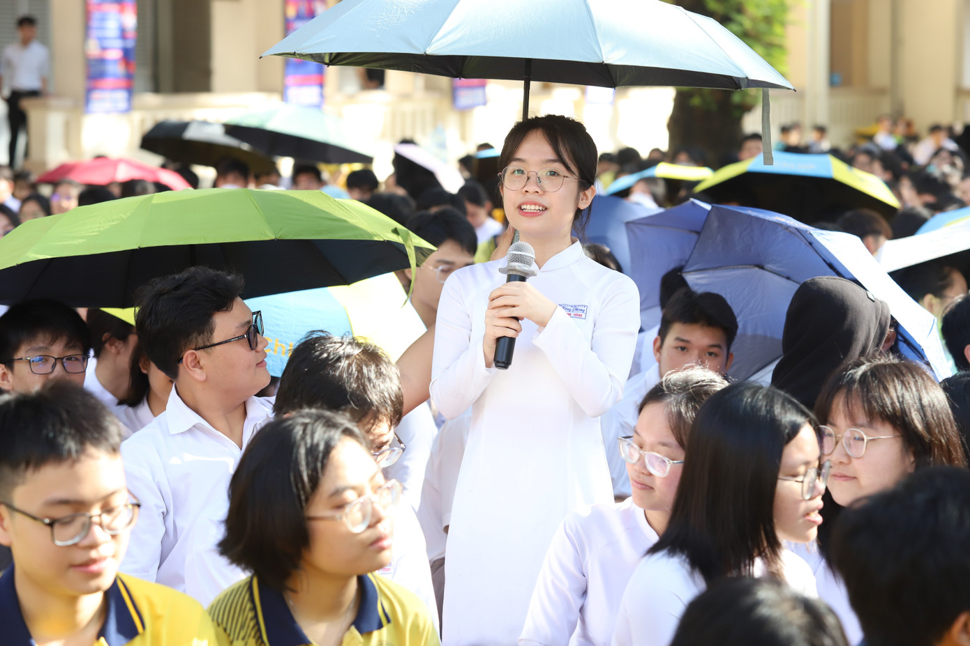 Hàng nghìn học sinh Trường Chuyên THPT Lê Hồng Phong hào hứng theo dõi buổi phát động. Ảnh: Ngô Tùng