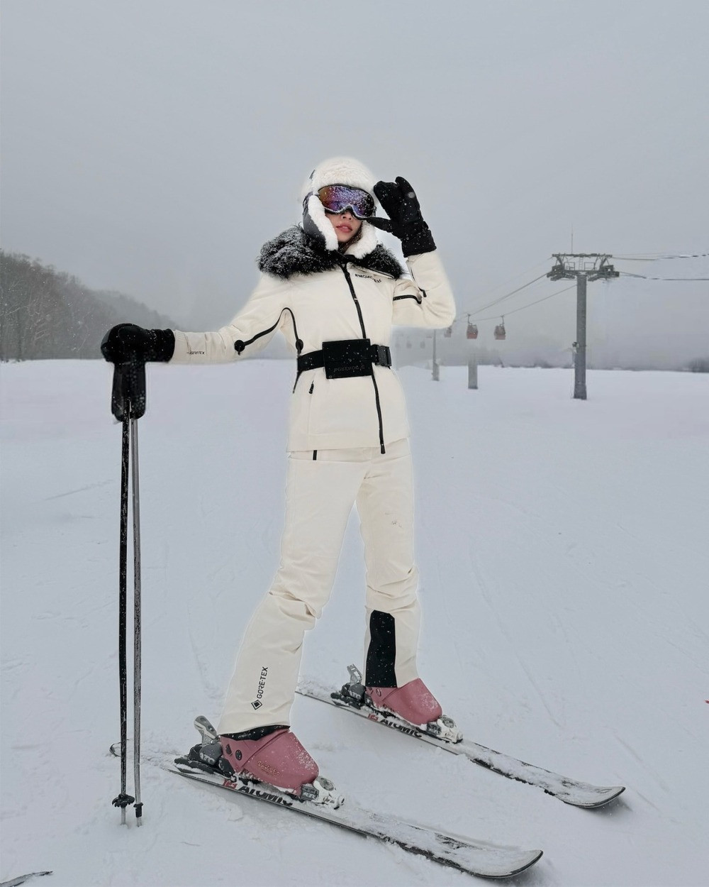 Chi Pu mặc kín mít khi đi trượt tuyết ở Cáp Nhĩ Tân, Trung Quốc.