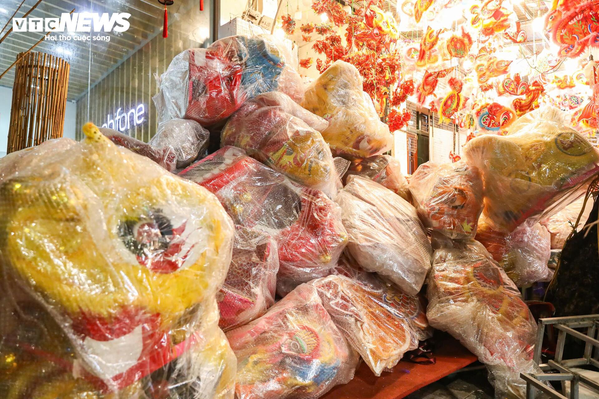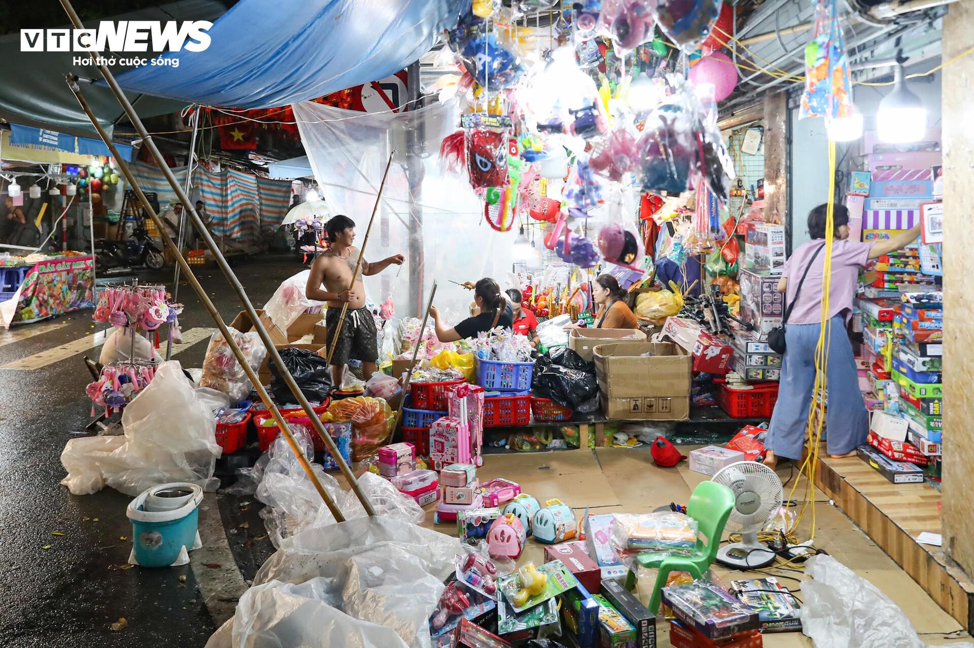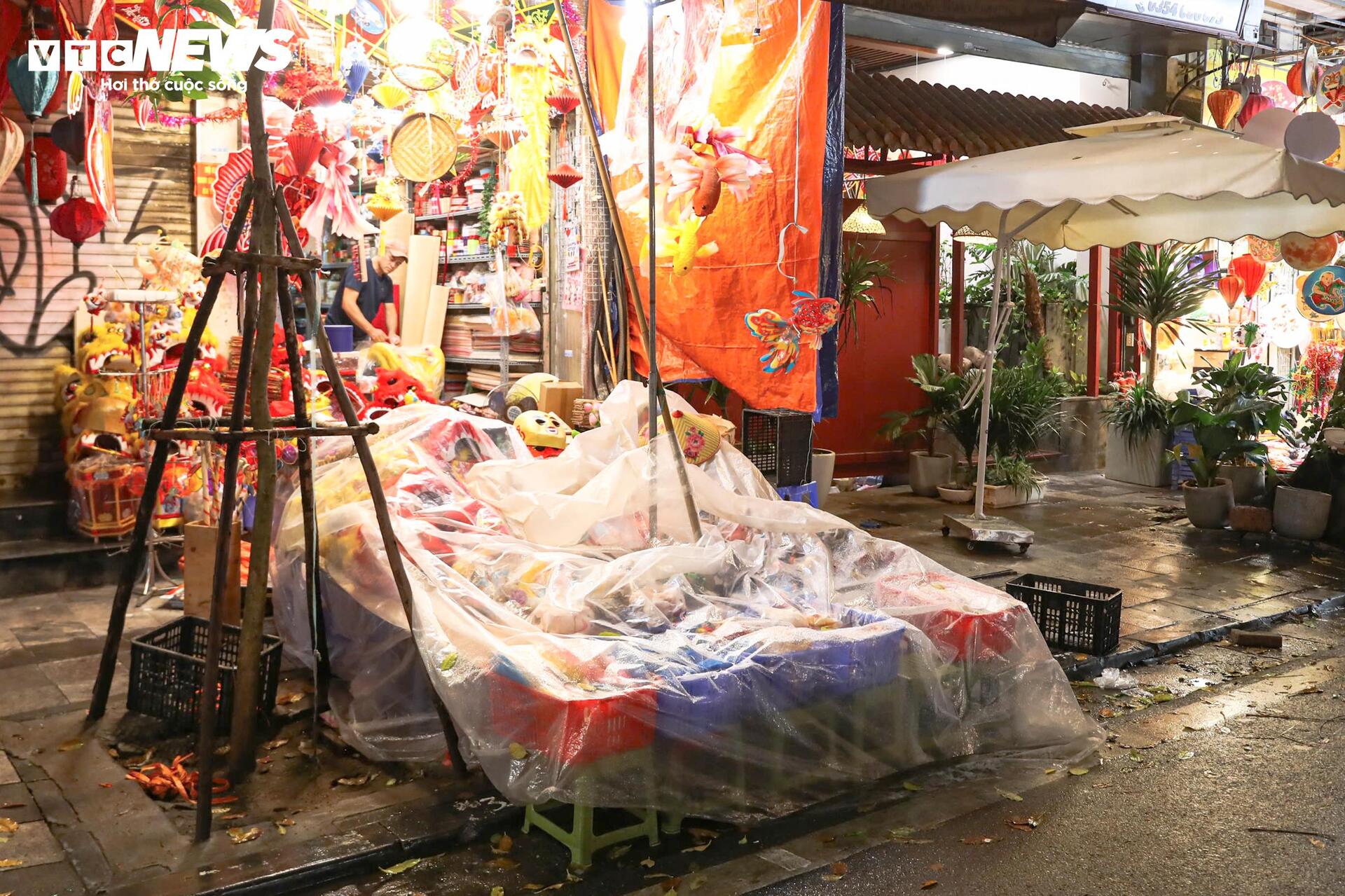 Nhiều cửa hàng kinh doanh đồ chơi Trung thu truyền thống bằng giấy, bóng kính,... phải che phủ kỹ lưỡng để tránh hư hại.