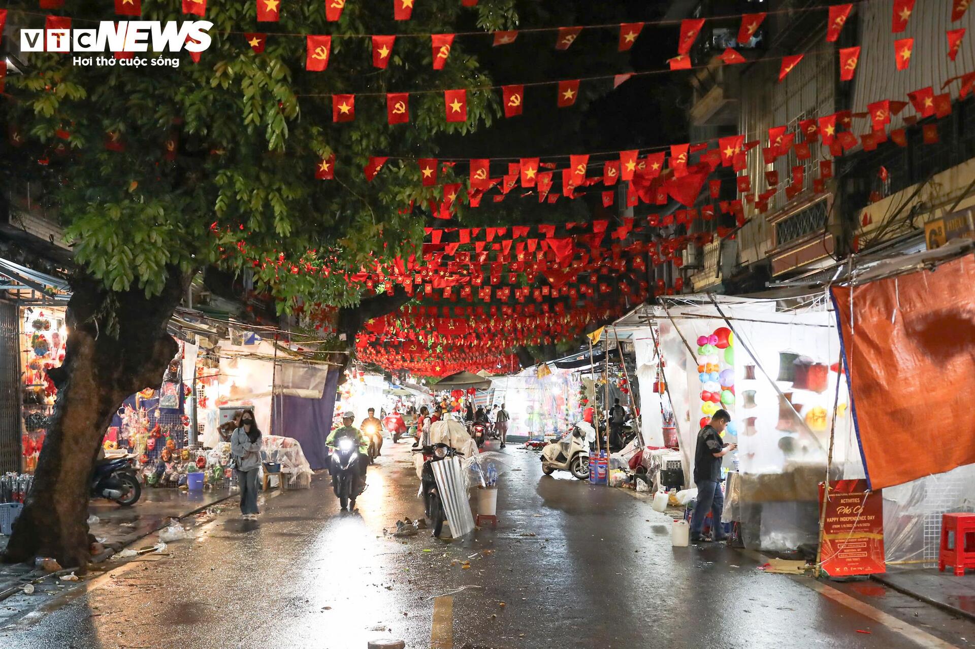Tối 6/10 (tức 15/8 Âm lịch), do ảnh hưởng của hoàn lưu cơn bão số 11, Hà Nội mưa rả rích từ đầu giờ chiều khiến phố Hàng Mã (Hà Nội) vốn đông đức, rực rỡ sắc màu dịp Tết Trung thu nay vắng vẻ lạ thường.