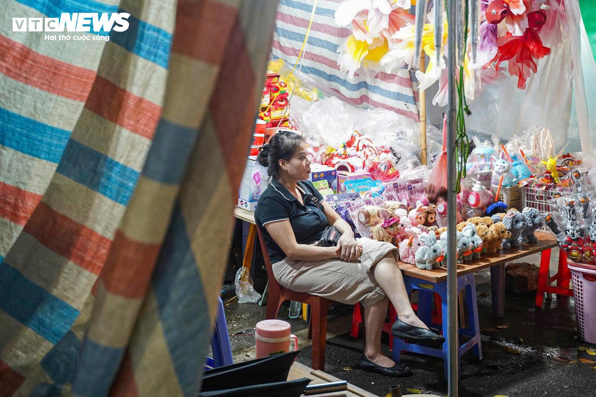 “Mọi năm, đêm Trung thu ở đây nhộn nhịp lắm, khách mua đông, hàng bán hết rất nhanh. Năm nay, cơn mưa bất ngờ khiến lượng khách giảm hẳn. Tôi phải vội bê hàng vào trong, nhiều sản phẩm còn chưa kịp bày ra”, bà An, một tiểu thương ở phố Hàng Mã chia sẻ.