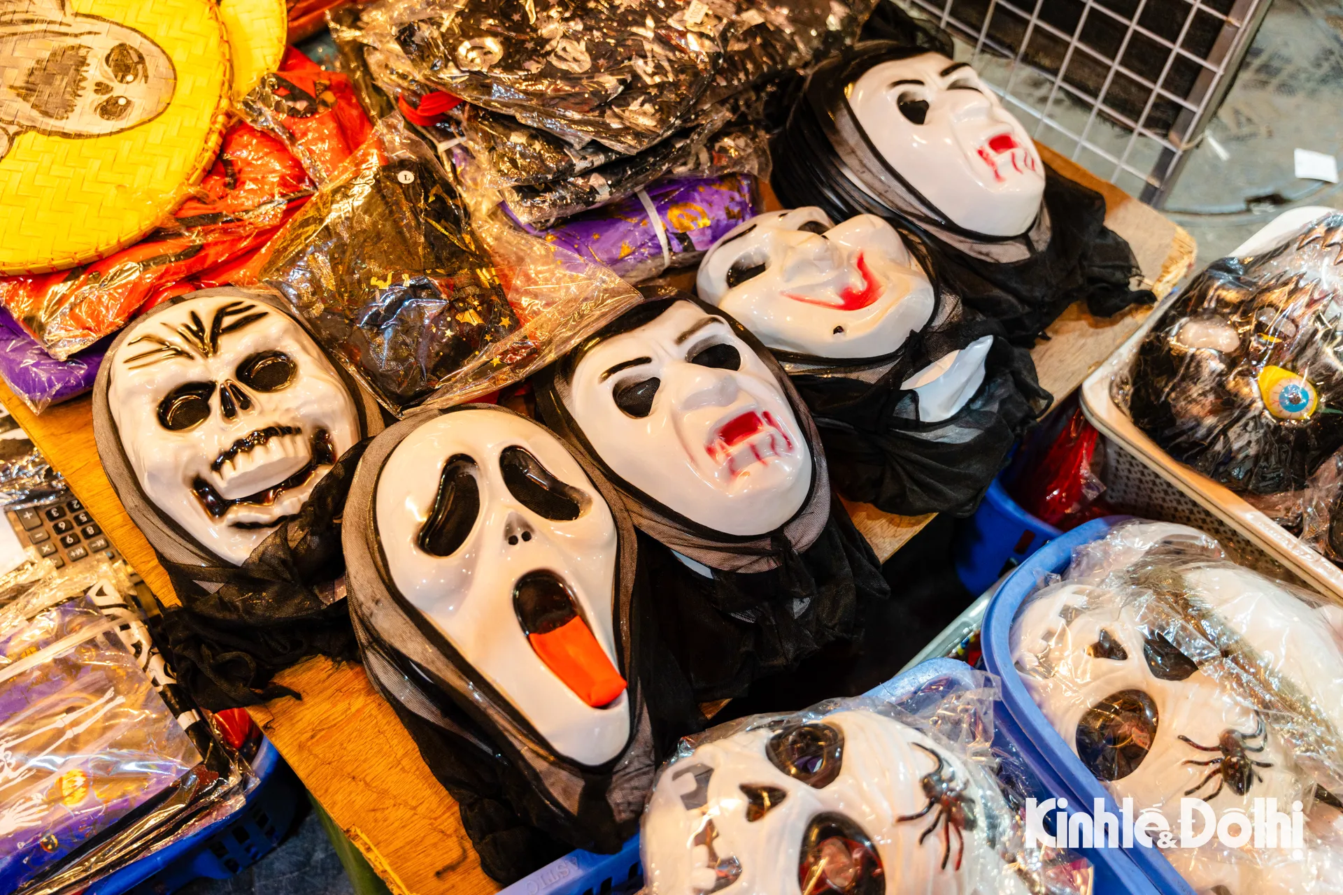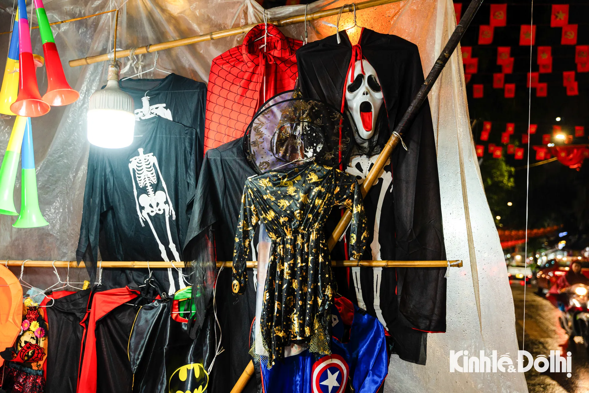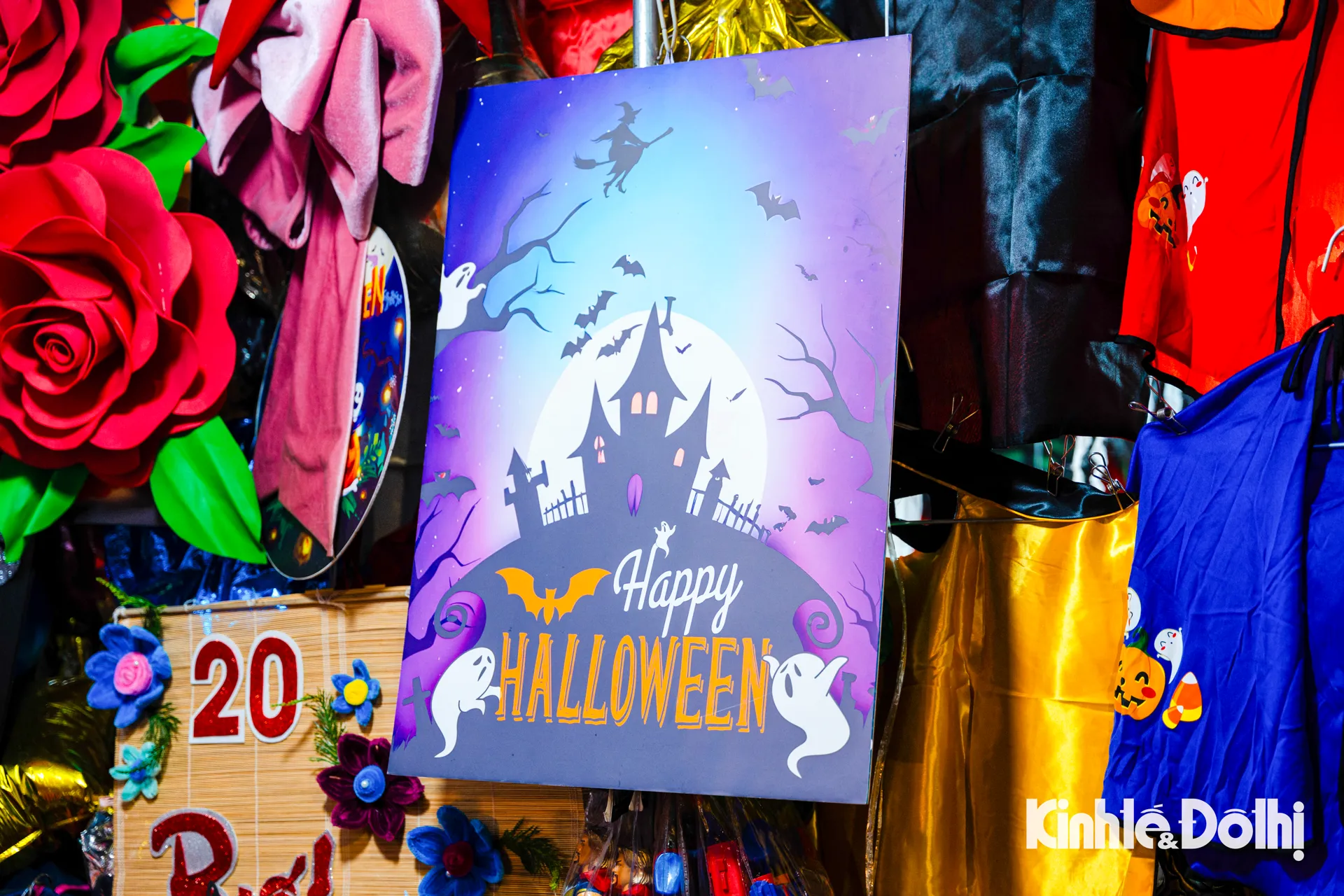 Những chiếc đầu lâu lấp ló dưới ánh đèn, mặt nạ phù thủy treo kín lối đi, bí ngô “quỷ” với đủ hình thù kỳ quái, áo choàng đen, mũ chóp nhọn, và cả những chiếc đèn lồng ma mị nhấp nháy ánh sáng đỏ cam.