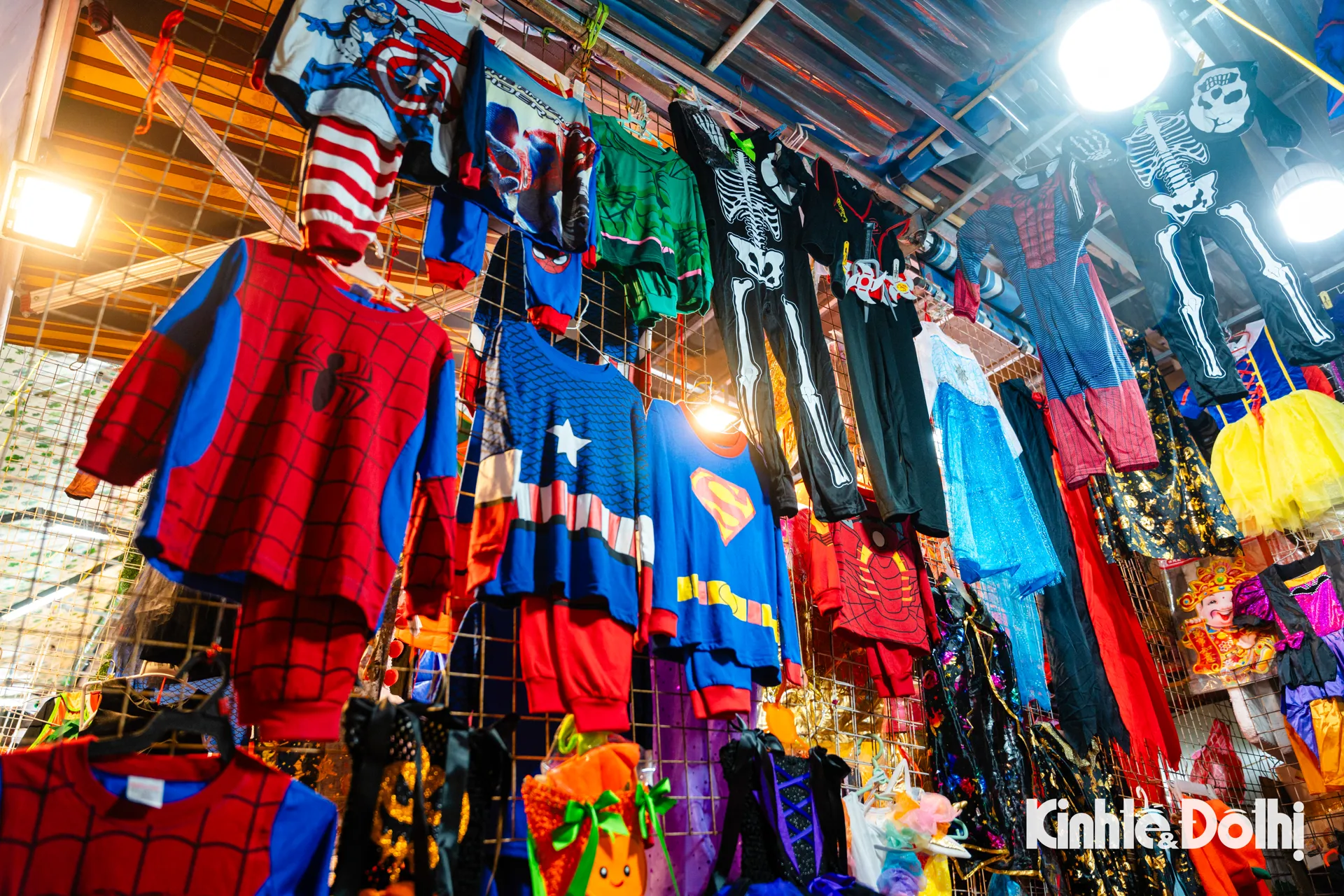 Nhiều mẫu mã quần áo hóa trang nhân vật phong phú thu hút người mua trên phố Hàng Mã.