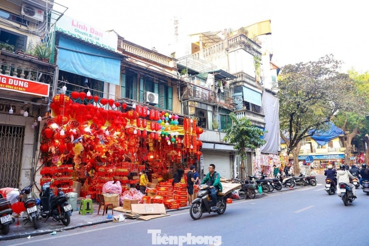 Dọc khắp tuyến phố, các cửa hàng tràn ngập vật phẩm truyền thống. Từ bao lì xì, dây treo may mắn đến những chiếc đèn lồng tinh xảo đều được trưng bày bắt mắt. Sự thay đổi nhanh chóng này tạo nên một không gian văn hóa sống động, thu hút sự chú ý của bất kỳ ai đi ngang qua khu vực phố cổ.