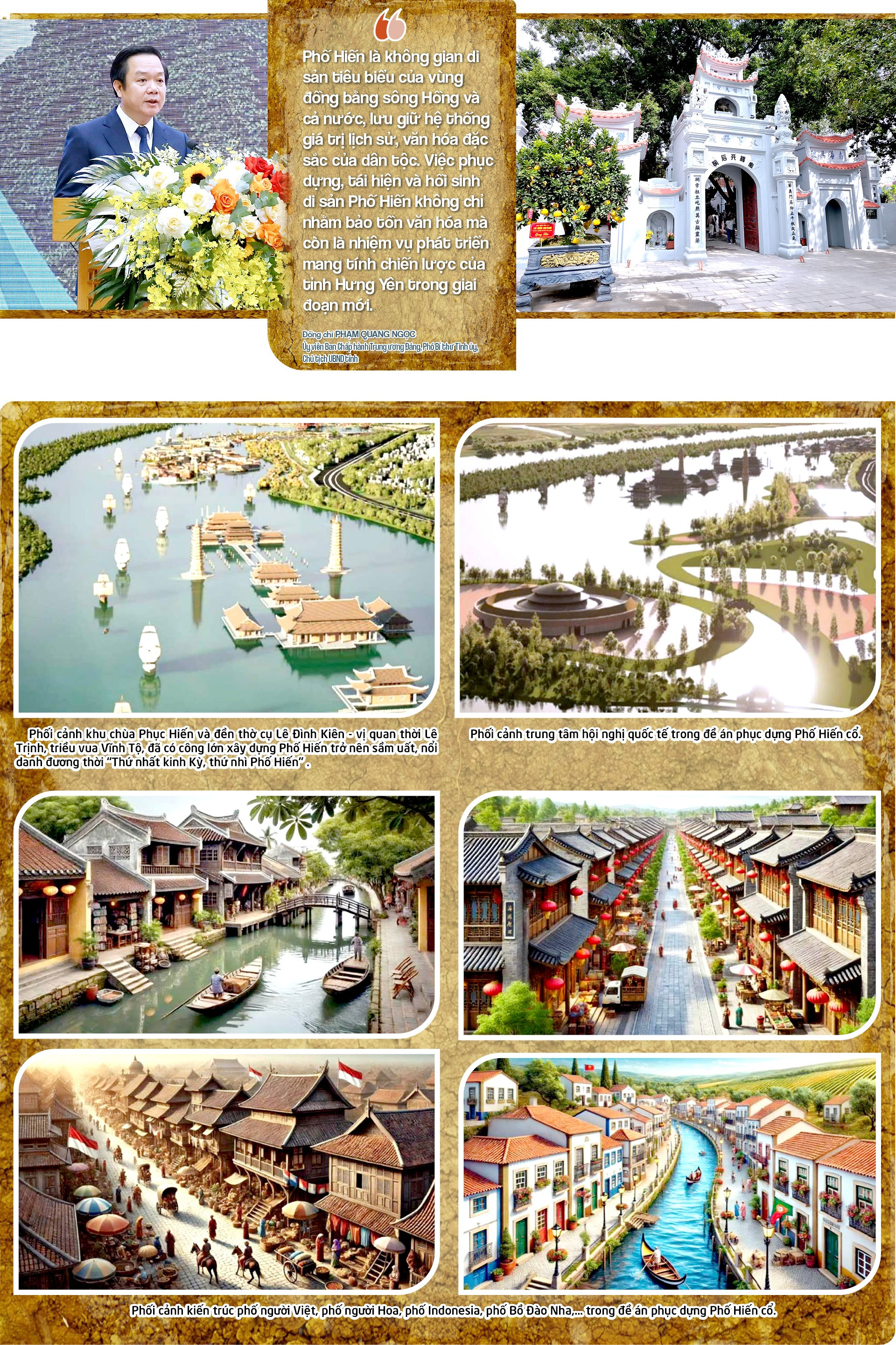 Trước đó, vào tháng 4/2025, Văn phòng Chính phủ đã có công văn truyền đạt ý kiến của Phó Thủ tướng Mai Văn Chính, giao Bộ Văn hóa, Thể thao và Du lịch chủ trì, phối hợp với các Bộ liên quan khẩn trương nghiên cứu, đề xuất giải pháp cụ thể về việc triển khai đề án "Xây dựng và phục dựng Phố Hiến cổ" với tổng mức đầu tư hơn 47.000 tỷ đồng trên diện tích hơn 1.700ha, nhằm khôi phục không gian đô thị Phố Hiến cổ.