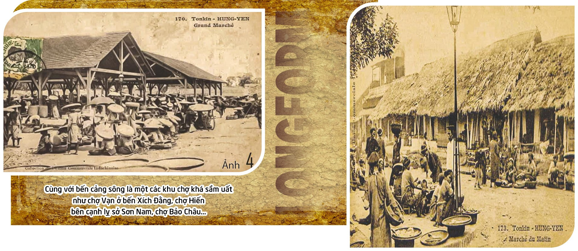Bến cảng Phố Hiến là nơi các tàu thuyền ngoại quốc lưu đỗ để làm thủ tục kiểm soát và xin giấy phép đi tiếp tới Kinh đô. Cùng với bến cảng sông là một các khu chợ khá sầm uất như chợ Vạn ở bến Xích Đằng, chợ Hiến bên cạnh lỵ sở Sơn Nam, chợ Bảo Châu… Những chợ này đã vượt khỏi khuôn khổ những chợ địa phương để trở thành các chợ liên vùng. Thuyền bè từ Thăng Long-Kẻ Chợ và các trấn gần xa trong nước cũng như nước ngoài đã đến đây buôn bán, trao đổi hàng hóa.