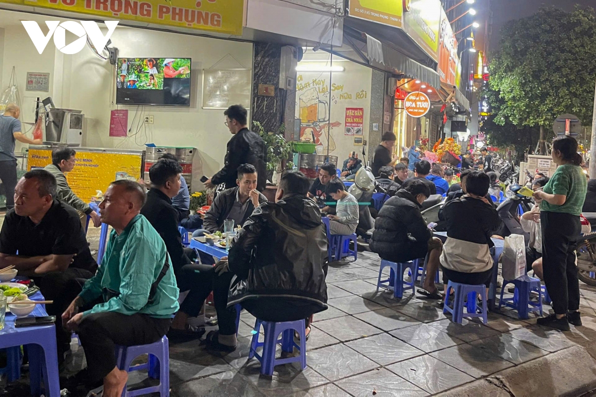 Nhiều tuyến phố biến thành “phố nhậu” bất đắc dĩ khi người dân bày bàn ghế tràn xuống cả lòng đường.