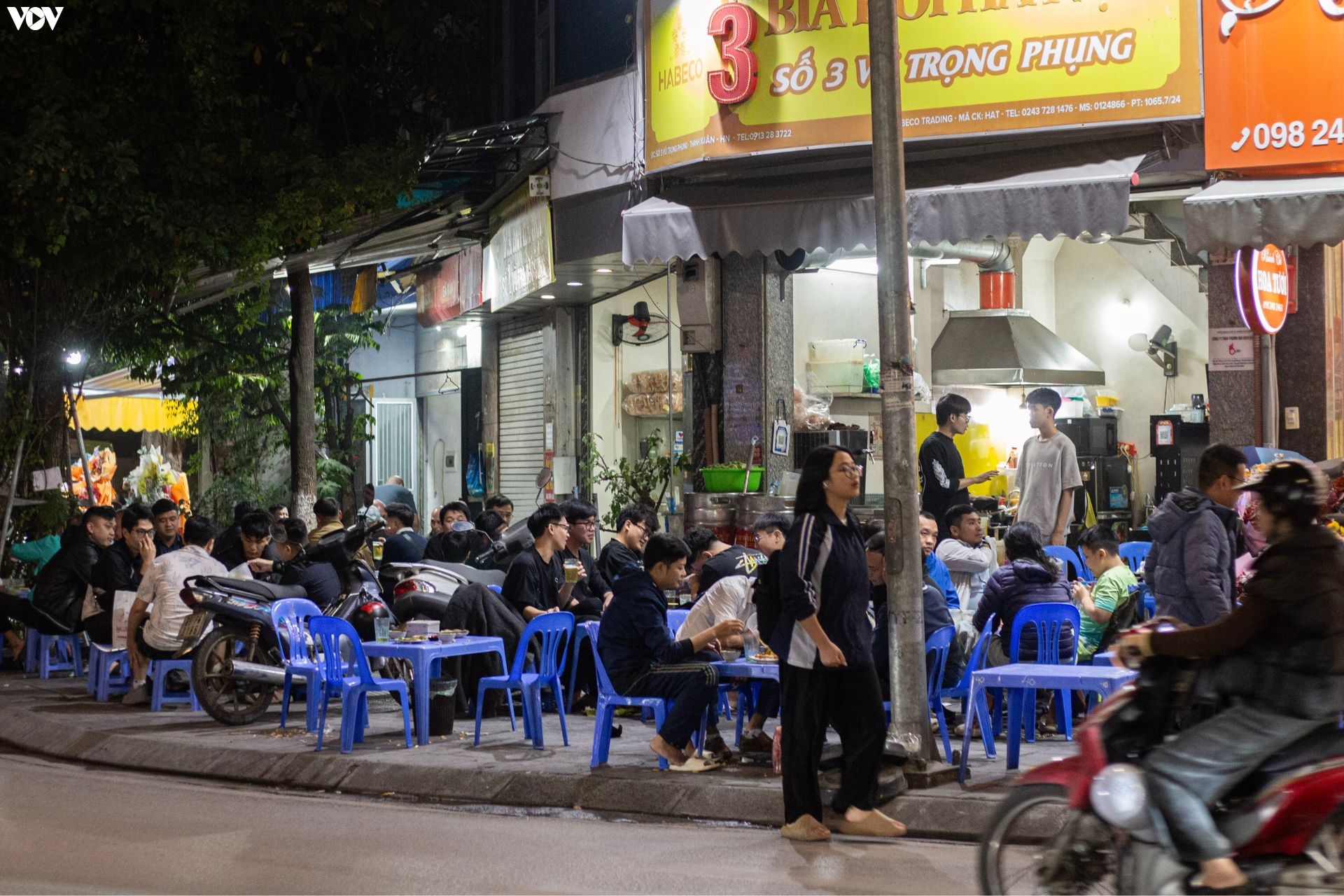 Trên phố Vũ Trọng Phụng, nơi có mật độ giao thông lớn gần với trục đường Nguyễn Trãi, ban ngày vỉa hè khá thoáng, nhưng về đêm trở nên "nhộn nhịp" bởi hàng bia lấn chiếm gần hết vỉa hè.