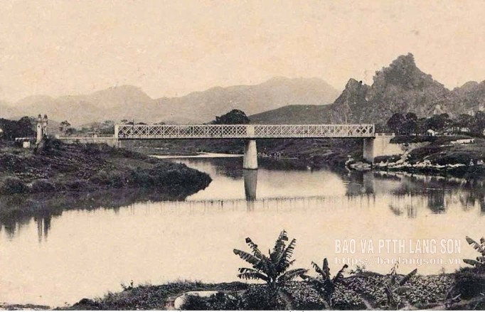 Bến sông Kỳ Cùng có hình con chó đá (phía bên phải) đầu thế kỷ XX