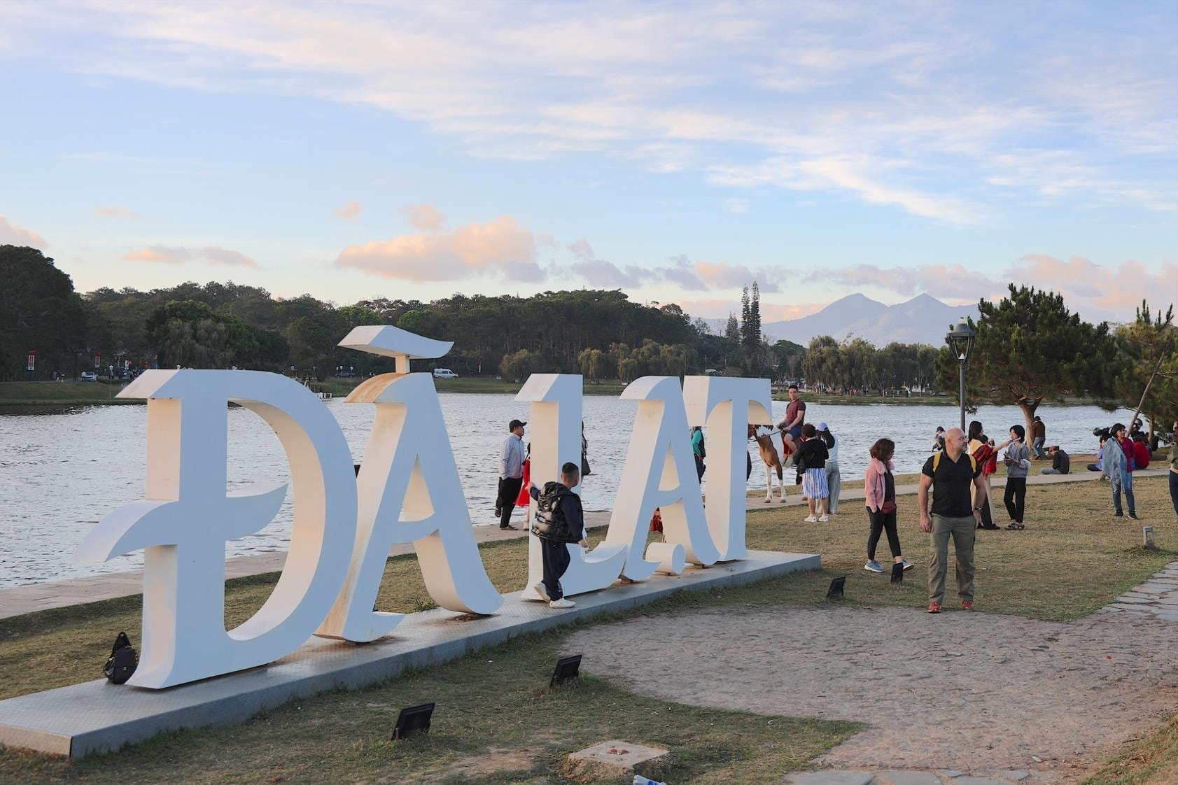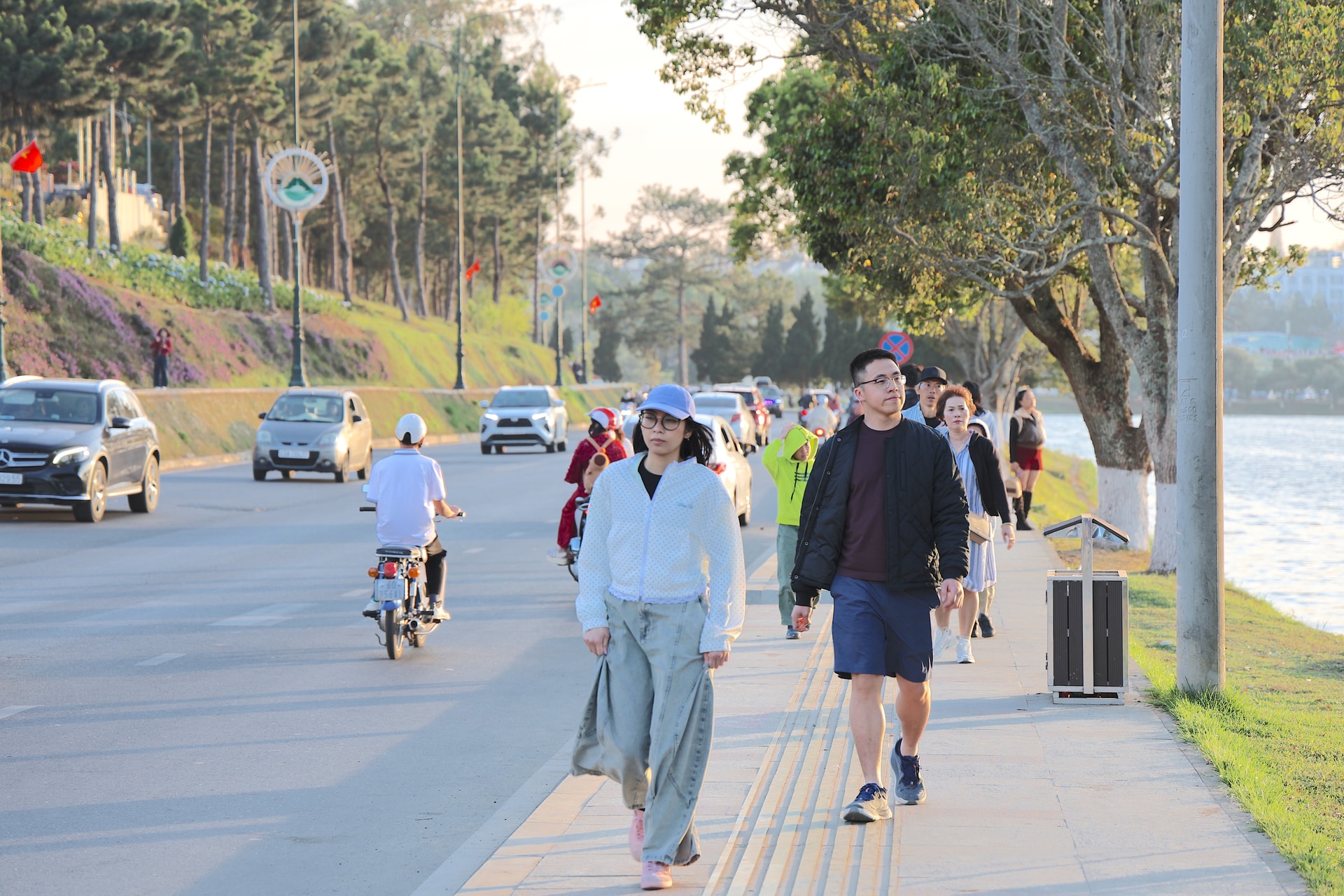 Dù đang trong kỳ nghỉ Tết, nhiều người dân địa phương và du khách vẫn chọn đi bộ quanh hồ để tận hưởng bầu không khí trong lành, thư thái.