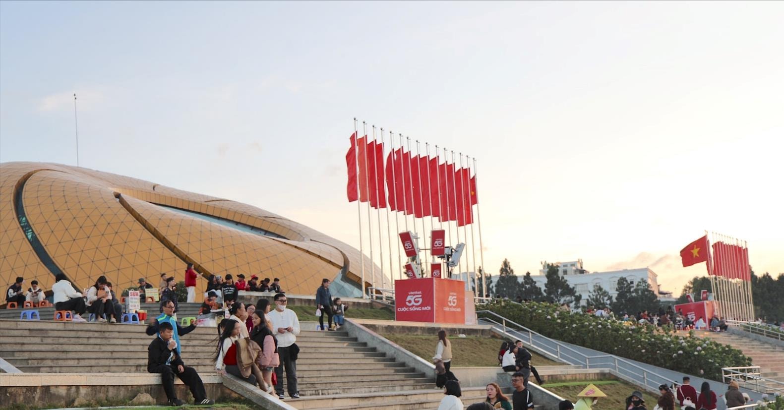Du khách tập trung đông tại khu vực quảng trường Lâm Viên (Phường Xuân Hương - Đà Lạt) tham quan, vui chơi dịp đầu năm