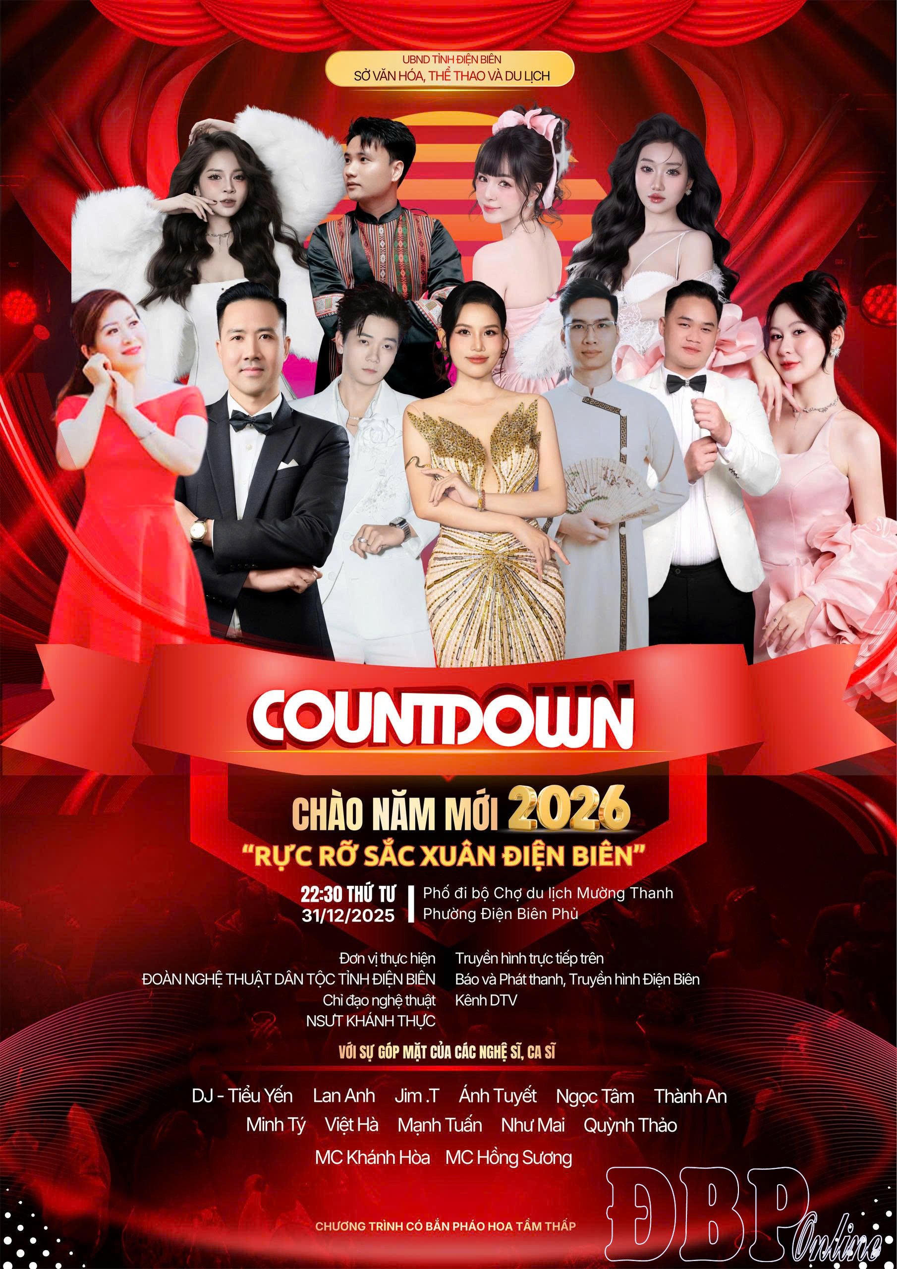 Điểm nhấn nổi bật nhất trong chuỗi hoạt động chào năm mới là sự kiện âm nhạc đặc biệt Countdown Concert và màn pháo hoa - “Rực rỡ sắc xuân Điện Biên 2026”, do Sở Văn hóa, Thể thao và Du lịch (VHTT&DL) tổ chức. Chương trình diễn ra vào tối 31/12/2025 tại Phố đi bộ Mường Thanh - không gian văn hóa, giải trí mới của người dân phố núi, được “đánh thức” bằng âm nhạc, ánh sáng và sắc màu lễ hội.