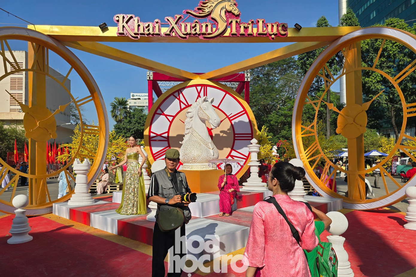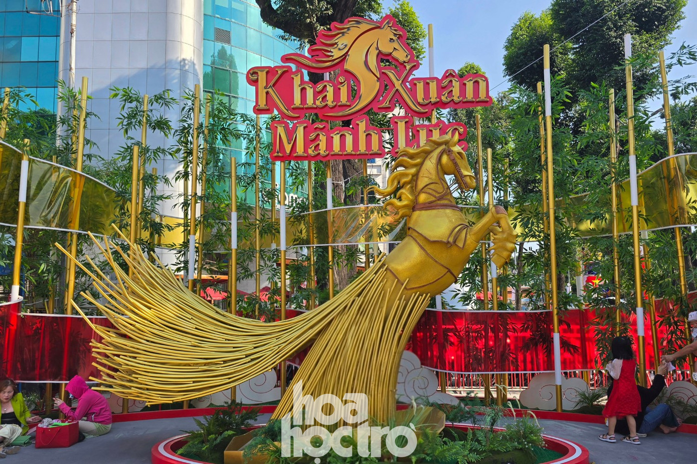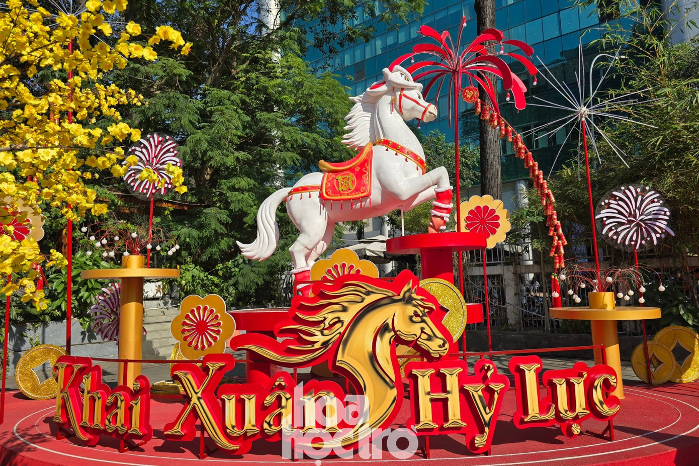 Đáng chú ý nhất là khu vực "Khai Xuân Trí Lực" lấy cảm hứng từ bàn cờ vua với quân Mã hiện đại. Bên cạnh đó, tiểu cảnh "Khai Xuân Mãnh Lực" với chú ngựa vàng kim được bao quanh bởi rừng tre vàng lại gợi nhắc đến hình tượng "ngựa sắt" hào hùng trong truyền thuyết Thánh Gióng.