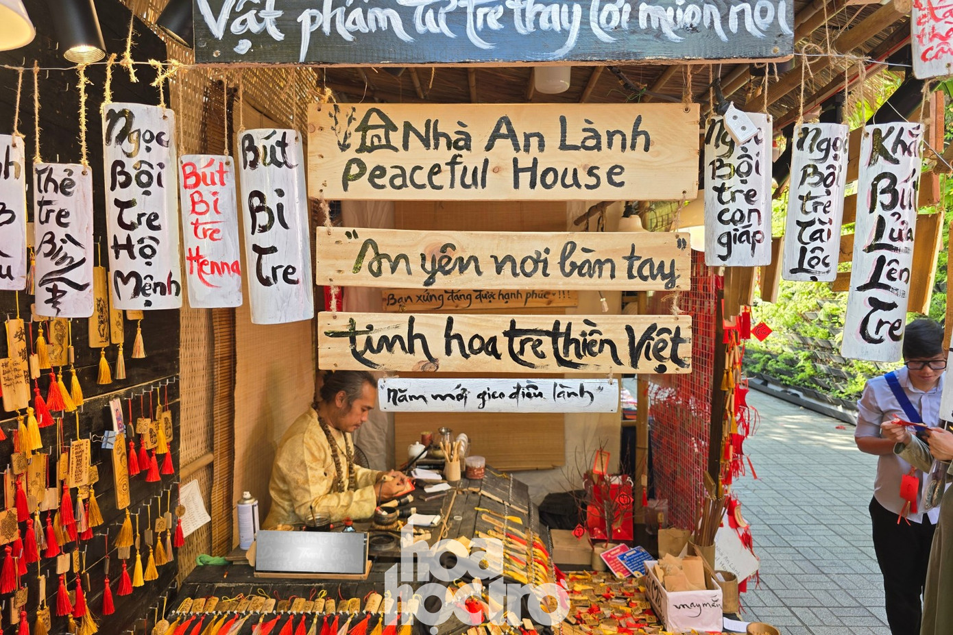 Không chỉ dừng lại ở những khung hình sống ảo, Phố Ông Đồ 2026 còn là nơi tôn vinh các giá trị làng nghề. Du khách có thể trải nghiệm nặn tò he, trang trí nón lá hay xin chữ tại các gian hàng thư pháp dọc vỉa hè đường Nguyễn Thị Minh Khai và Phạm Ngọc Thạch.