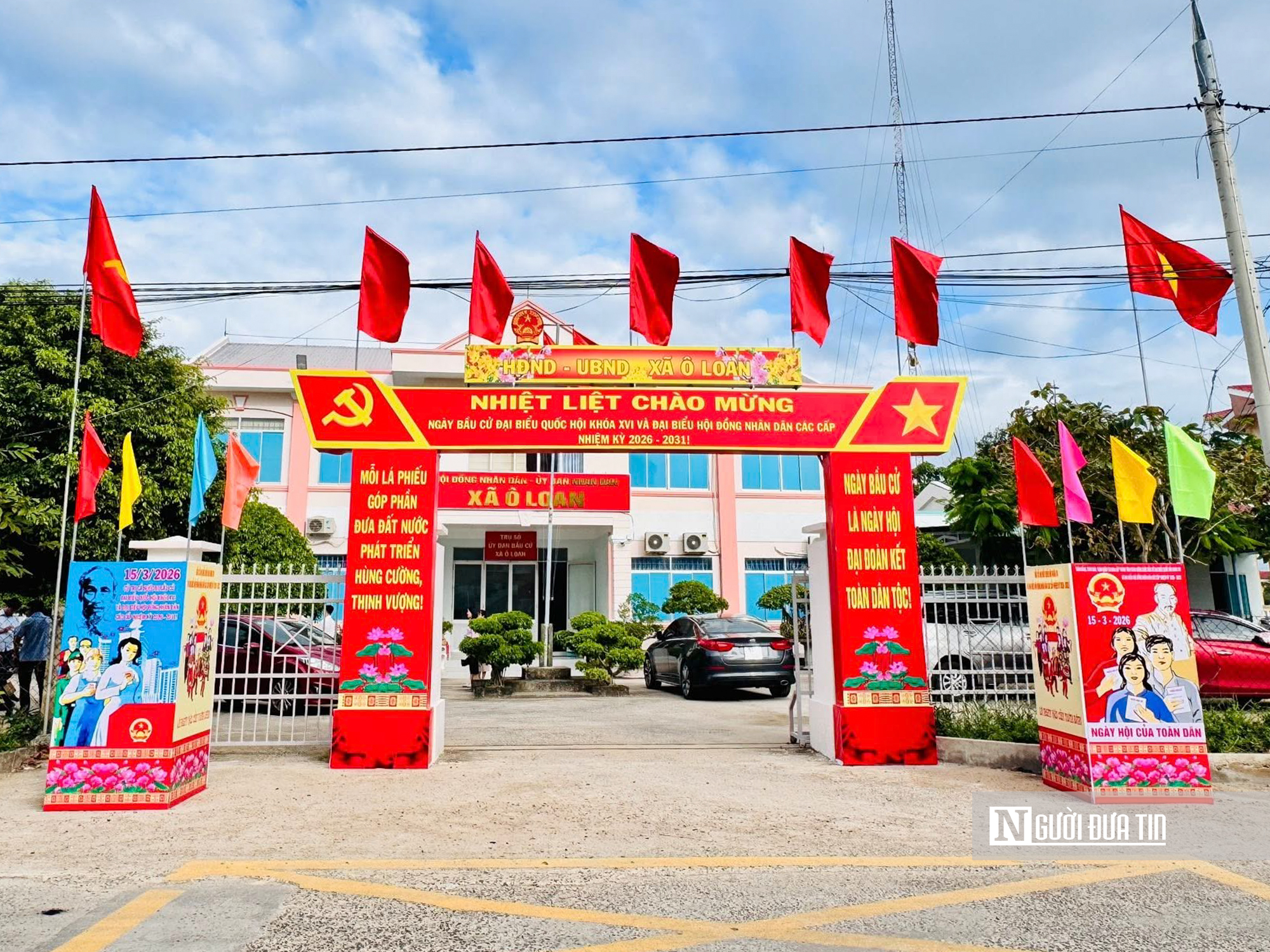 Trước các trụ sở cơ quan, trường học, cờ đỏ sao vàng, khẩu hiệu được treo trang trọng.