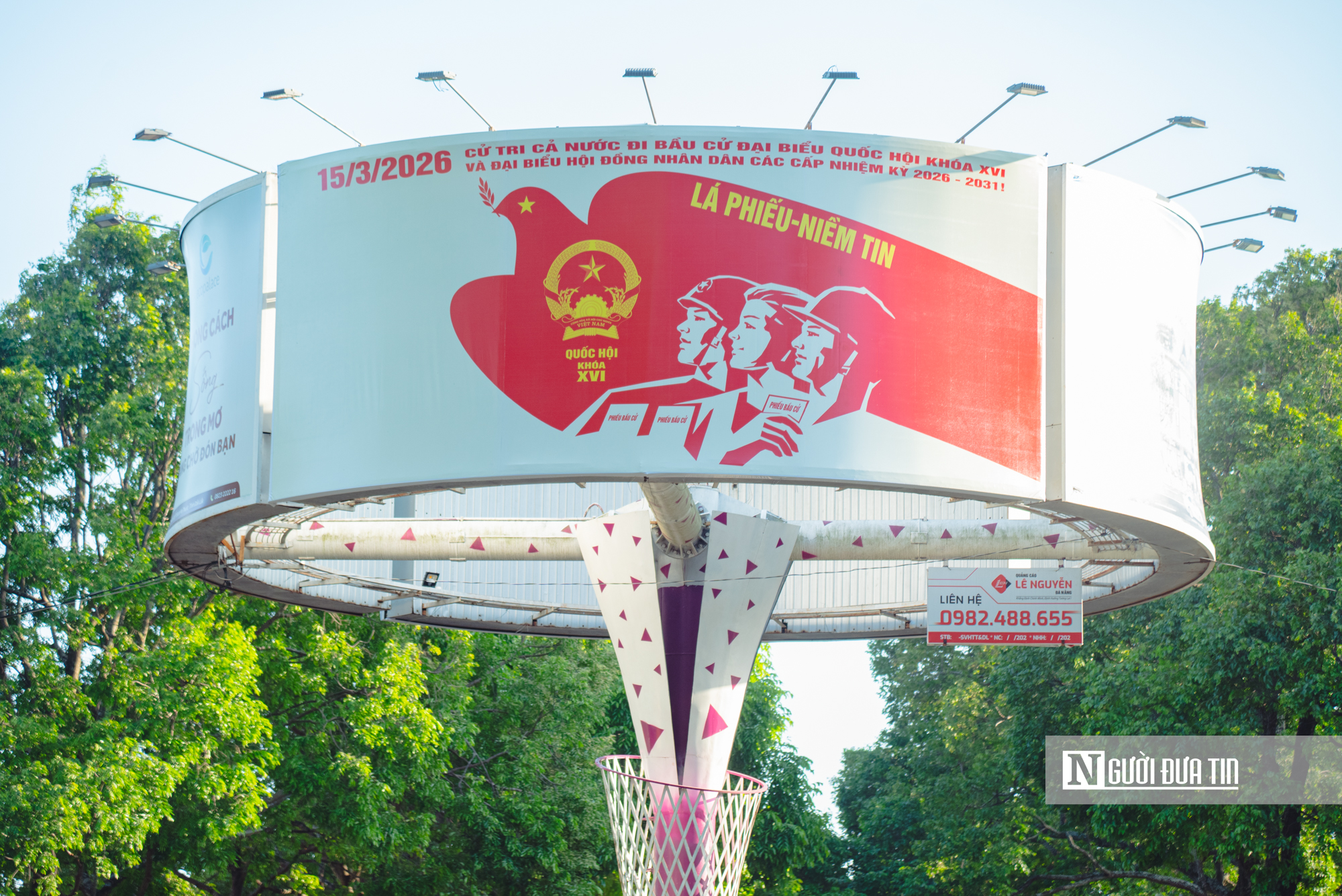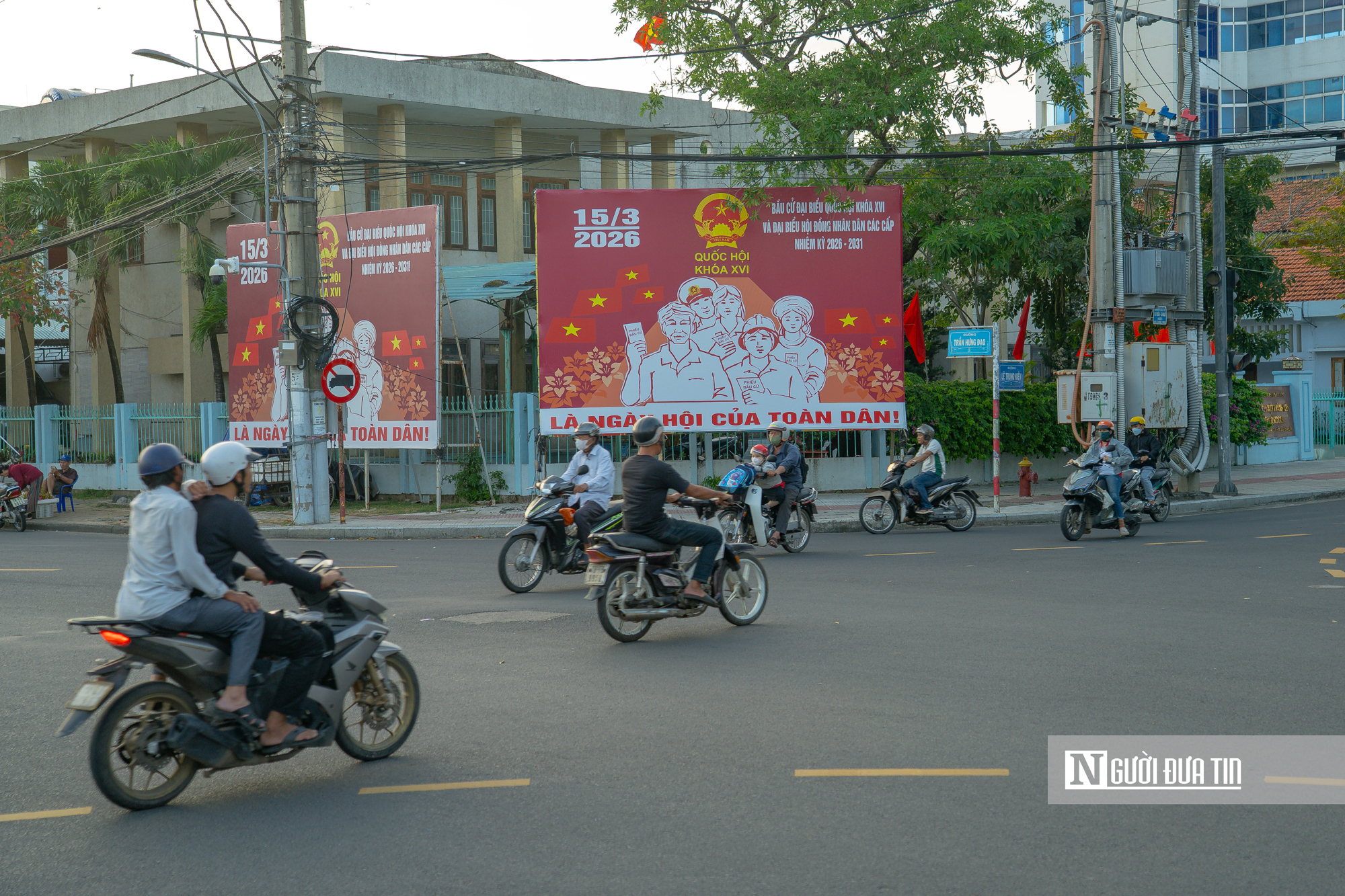 Tại tuyến đường Lê Duẩn, Nguyễn Tất Thành..., hệ thống pano, áp phích tuyên truyền về ngày bầu cử được lắp đặt đồng bộ, tạo nên diện mạo nổi bật cho các đô thị trong giai đoạn mới.