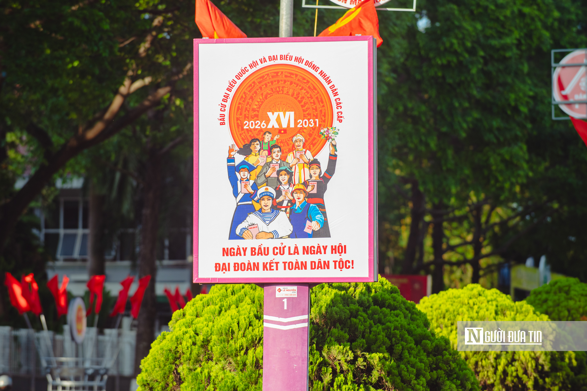 Nhiều cụm pano lớn với nội dung tuyên truyền về bầu cử được dựng lên ở những vị trí dễ quan sát, góp phần lan tỏa thông tin về ngày hội toàn dân.