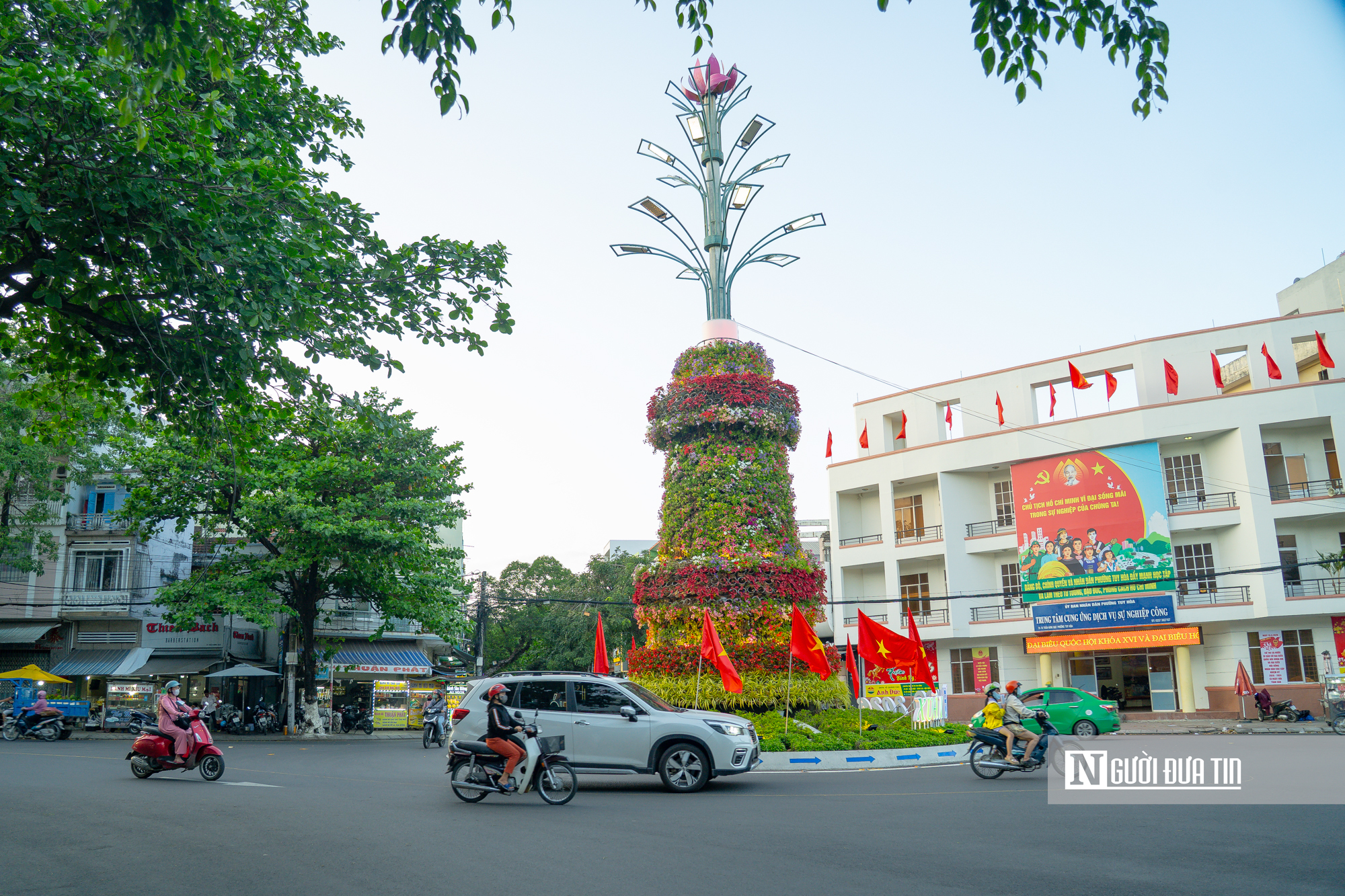 Ở phía Đông của tỉnh, đường phố ở phường Tuy Hòa cũng ngập tràn sắc cờ rực rỡ.