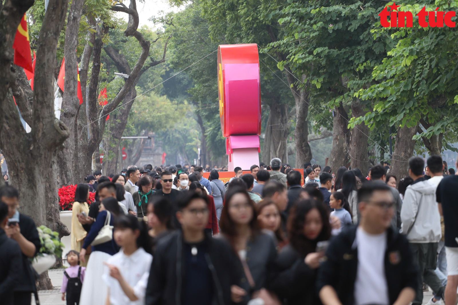 Nhiều bạn trẻ đi bộ, tìm góc check-in tại khu vực bờ hồ Hoàn Kiếm.