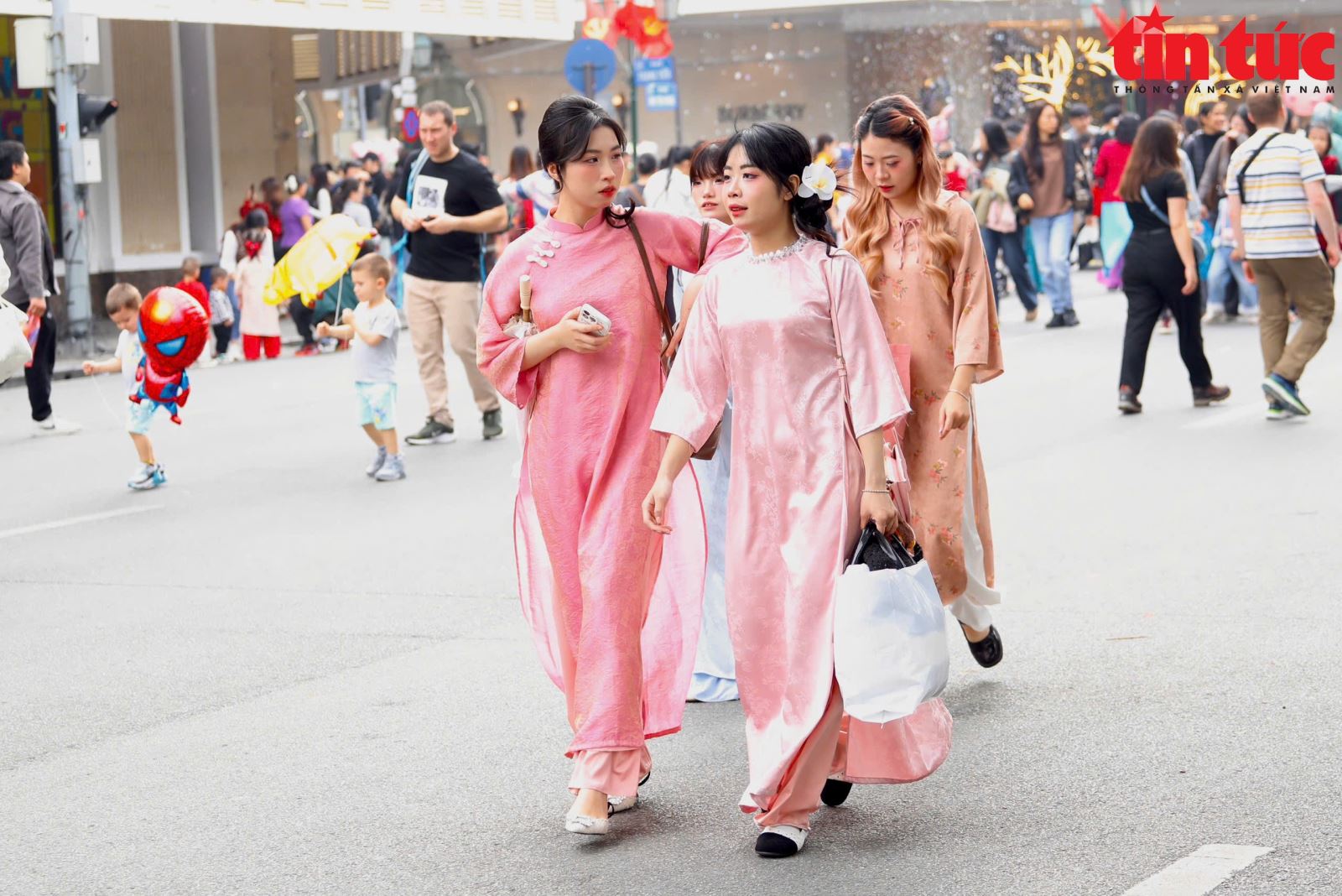 Các bạn trẻ xúng xính trong bộ quần áo mới đi dạo phố trong ngày đầu năm 2026.