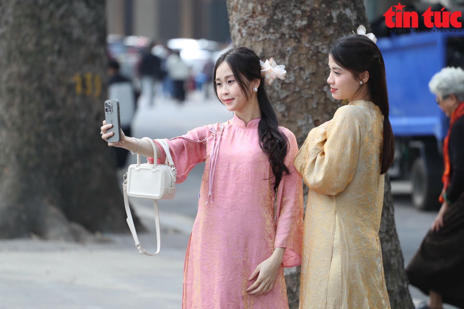 Du khách nước ngoài lưu lại khoảnh khắc đầu năm mới tại Thủ đô Hà Nội.