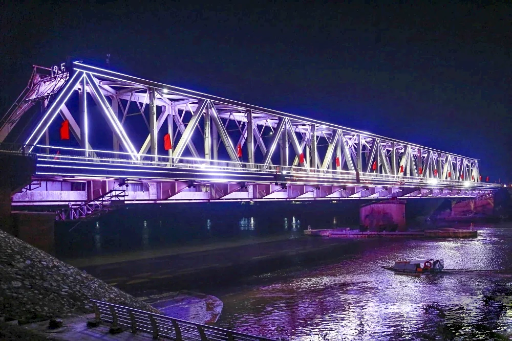 Cầu Hàm Rồng được trang trí hệ thống đèn LED nhiều màu sắc rực rỡ.