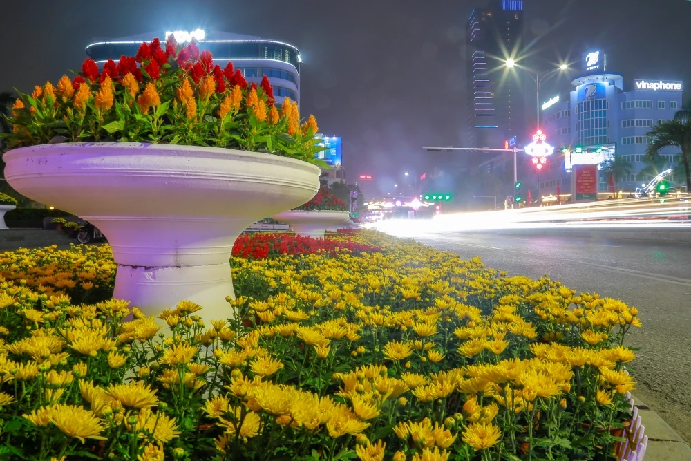 Trên các trục đường chính của các phường trung tâm, những bồn hoa được chăm chút tỉ mỉ trở thành điểm nhấn nổi bật.