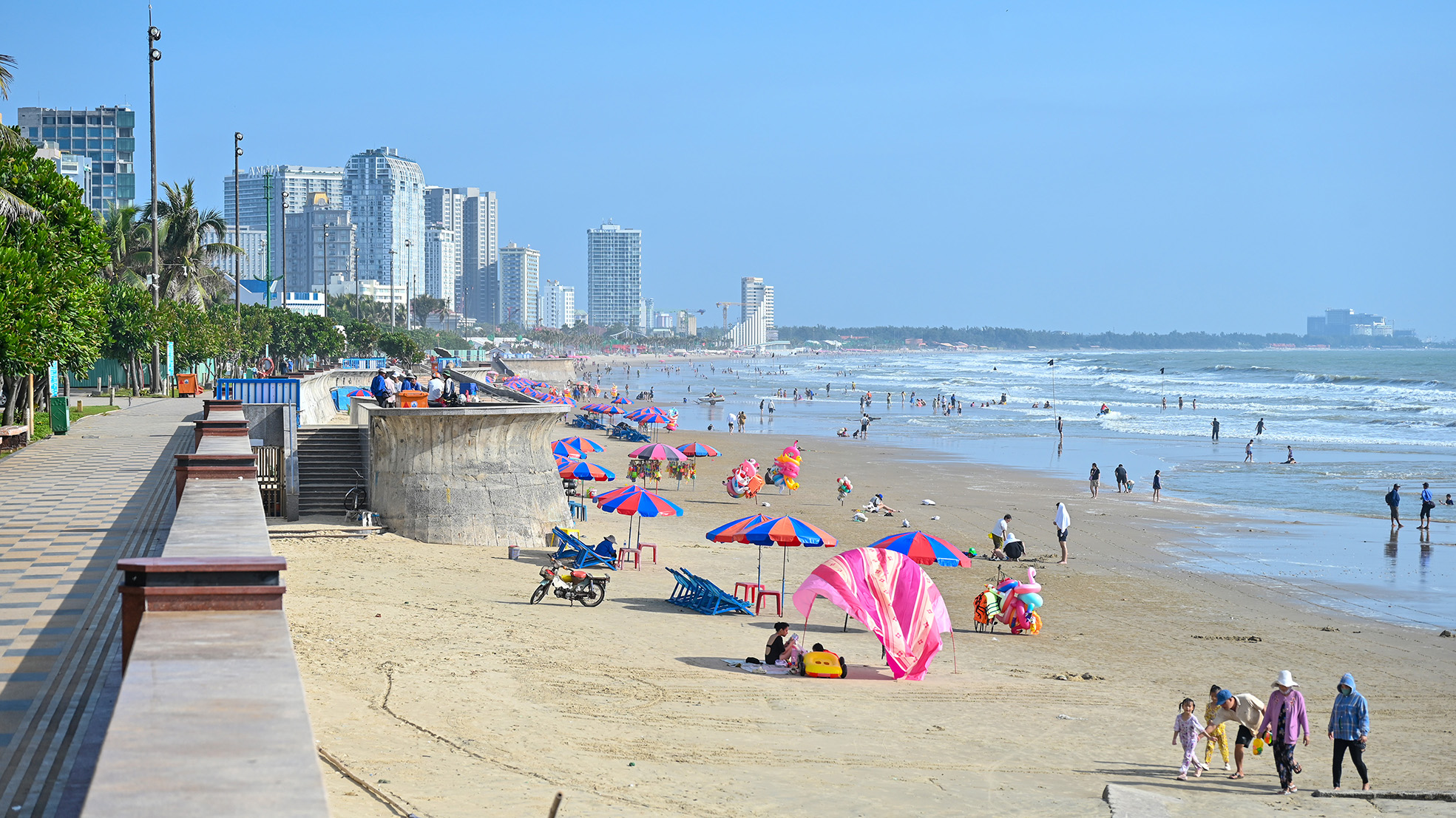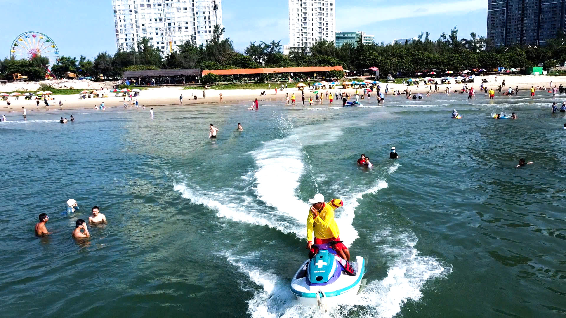 Nhân viên cứu hộ khu vực Bãi Sau, phường Vũng Tàu túc trực bằng ca nô, bảo đảm an toàn cho du khách vui chơi, tắm biển