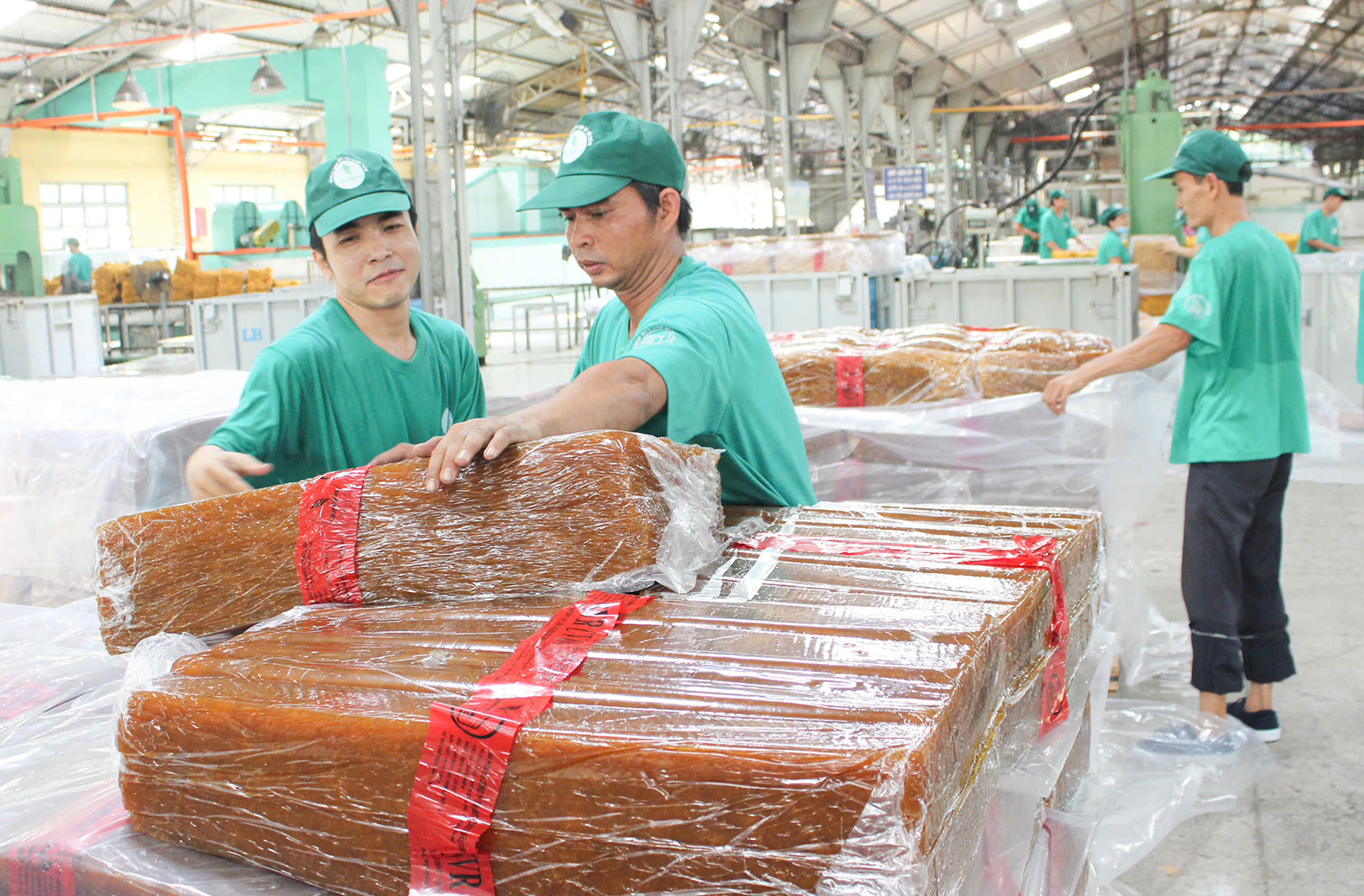 Công nhân Công ty TNHH MTV Cao su Dầu Tiếng đóng gói đơn hàng xuất khẩu những ngày cuối năm