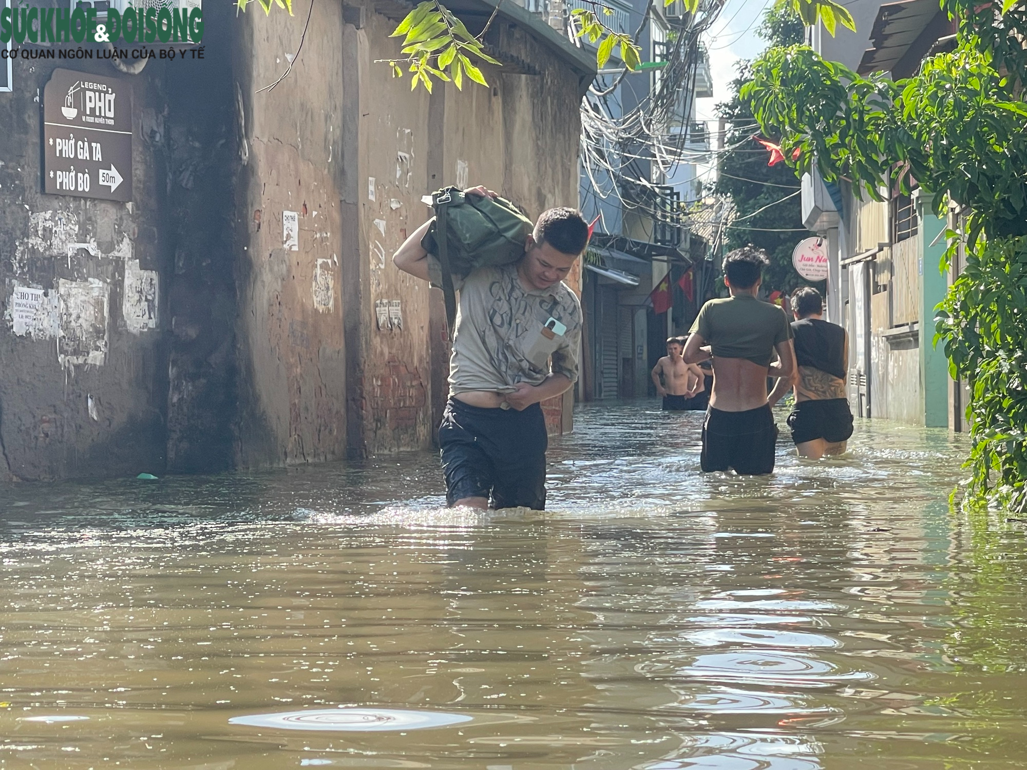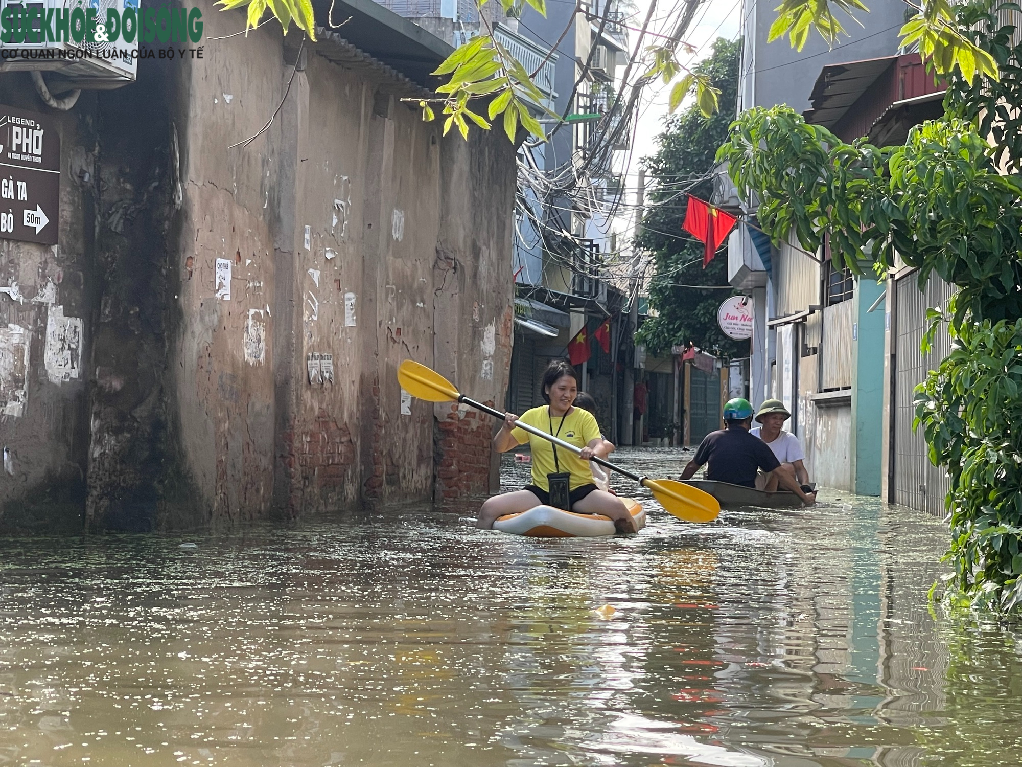Không chỉ khó khăn trong sinh hoạt, việc đi lại cũng trở thành một thách thức lớn. Trên đoạn phố vốn chỉ mất vài phút đi bộ, giờ đây người dân mất gấp đôi, gấp ba thời gian để chèo thuyền hoặc bì bõm lội nước. Những ngày này, hình ảnh chiếc thuyền nhôm, xuồng hơi chật vật vượt qua con ngõ ngập sâu trở thành khung cảnh quen thuộc.