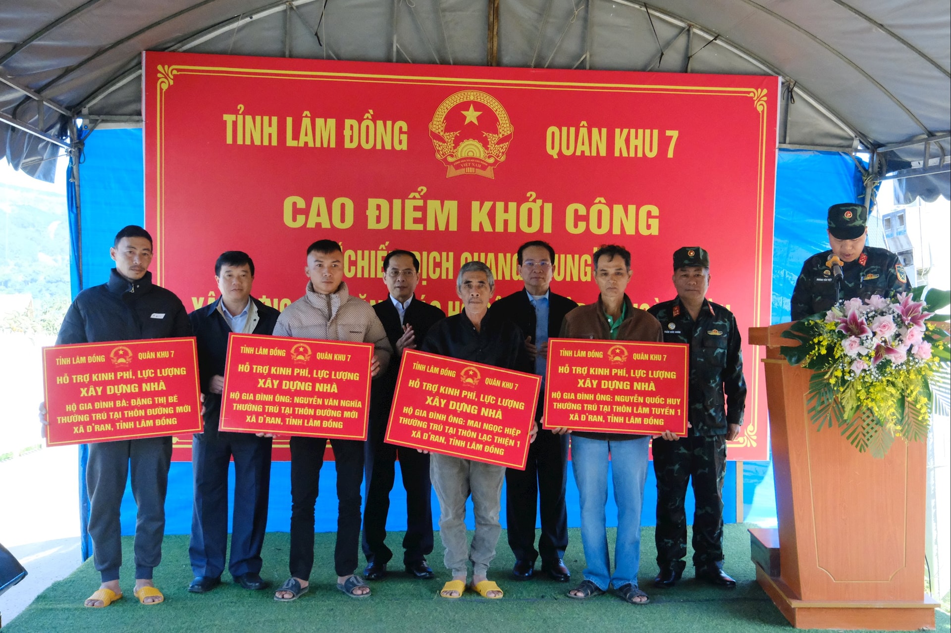 Tại khởi công, Đại tá Thái Thành Đức, Phó Chủ nhiệm Chính trị Quân khu 7 cho biết, sau lũ, Quân khu đã điều động 3.700 cán bộ, chiến sỹ xuống hỗ trợ, khắc phục hậu quả cho Lâm Đồng. Sự chung tay, đồng lòng của cấp ủy, chính quyền, bà con Nhân dân đã thể hiện sự kiên cường trong phòng, chống bão lũ. Qua thiên tai, hoạn nạn, tình đoàn kết của người dân, chính quyền, bộ đội được tiếp tục thắp sáng.