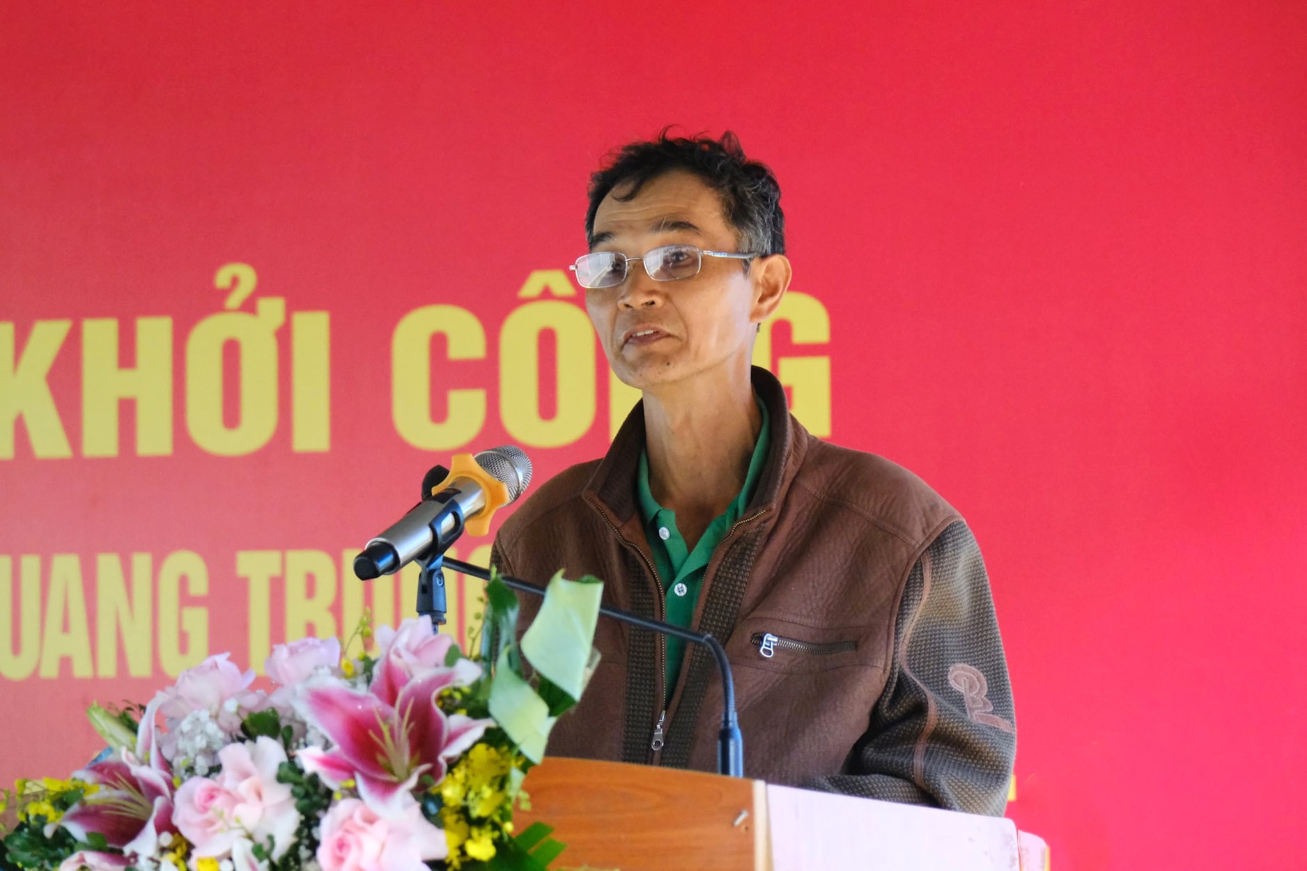 Ông Mai Ngọc Hiệp, người dân bị sập nhà do mưa lũ tại thôn Lạc thiện, xã D'ran chia sẻ tại Lễ khởi công